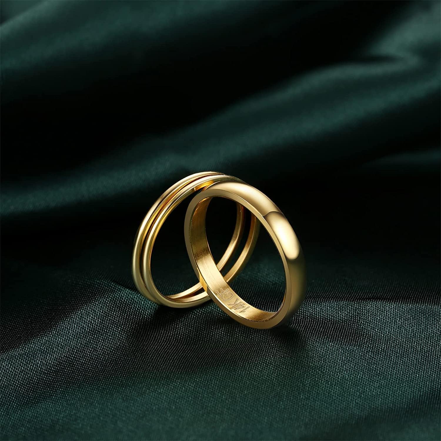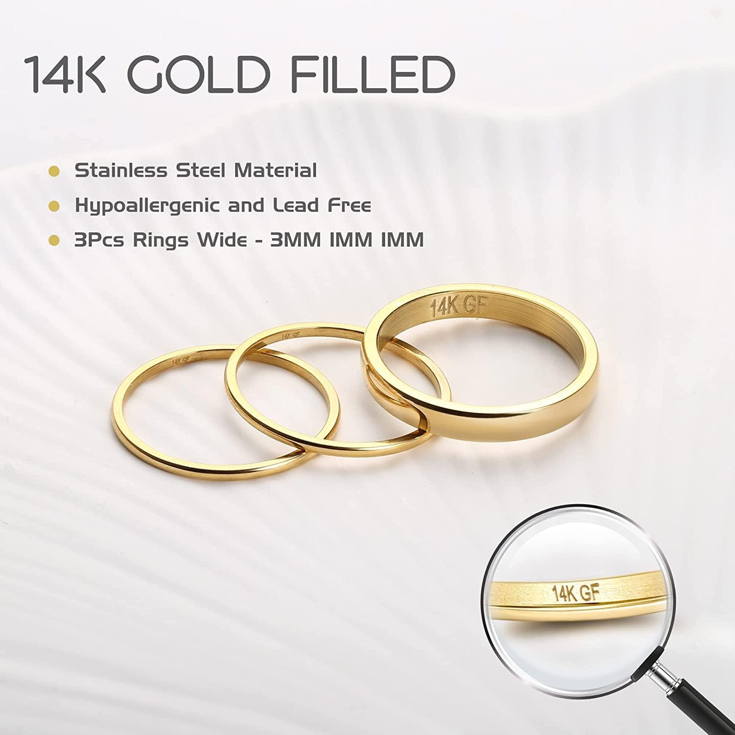 Adramata 14K Gold Filled Rings for Women Stacking Rings Stackable Thin Gold Rings Simple Plain Pinky Thumb Statement Band Ring Comfort Fit 3Pcs 1mm 3mm