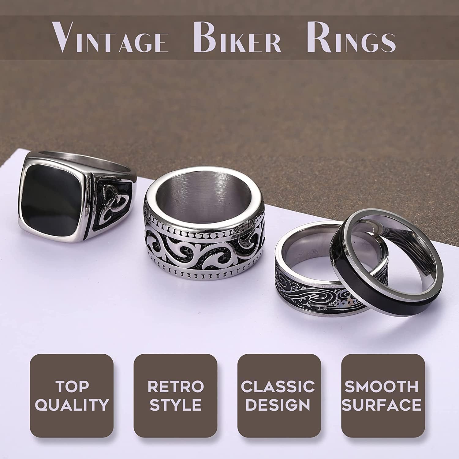 Customers appreciate the rings’ durability, style, and value for money. They find the stainless steel construction to be durable and resistant to tarnishing. Many consider the vintage design attractive and a good choice for men seeking distinctive jewelry pieces. However, some customers have differing opinions on the sizing accuracy.
