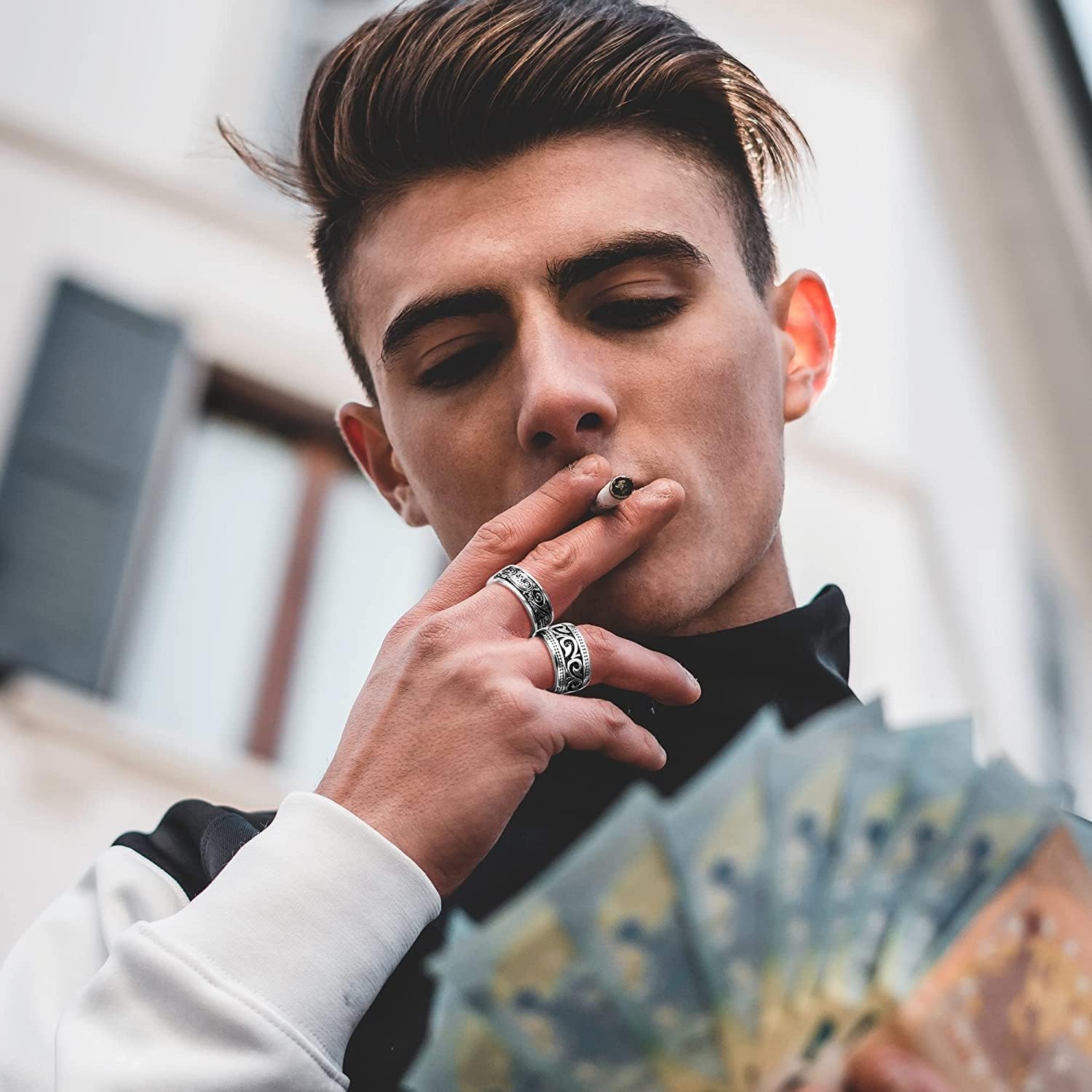 Dainty carving and retro pattern, giving you luxurious texture, makes you look more cool and handsome.