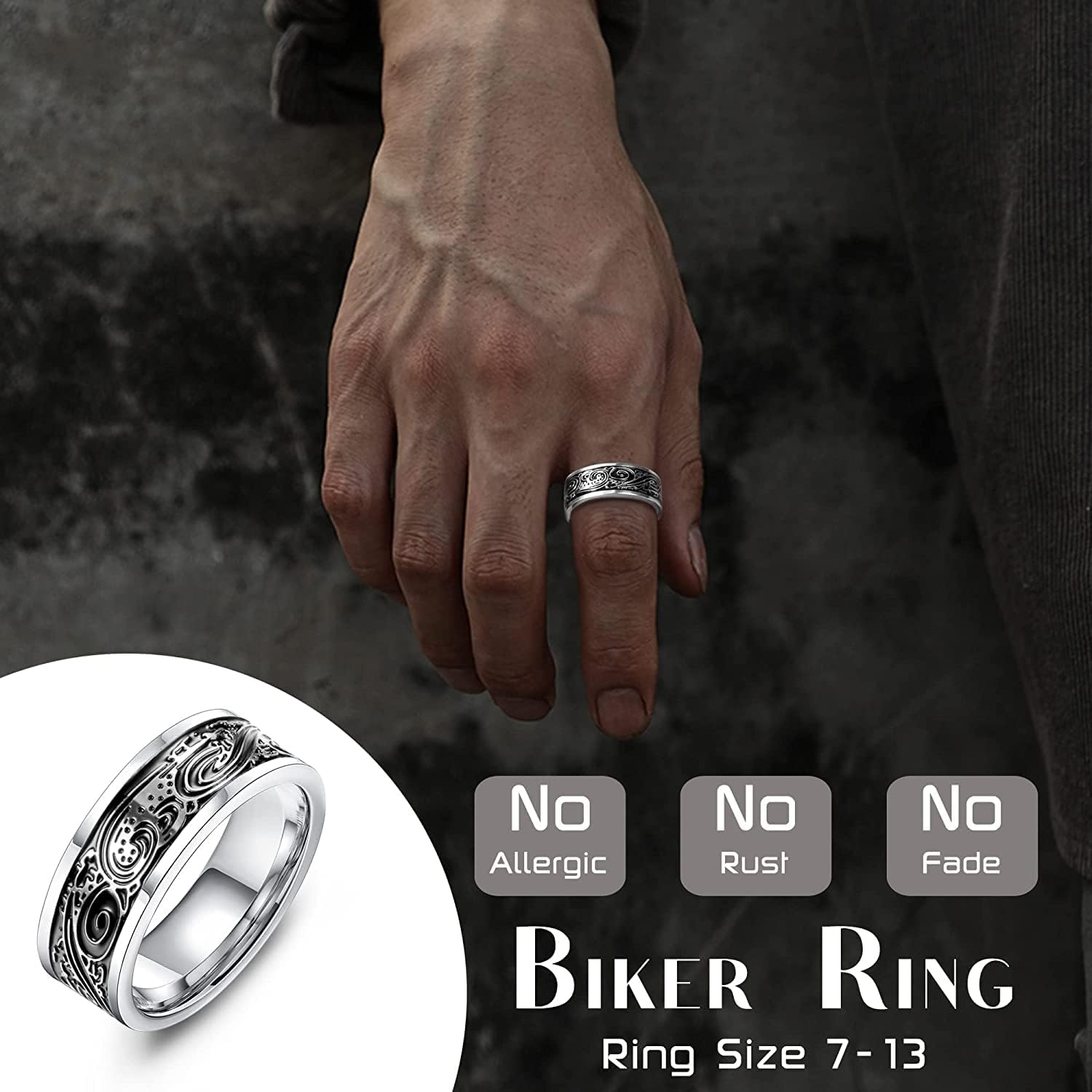 Standard size: US size 7-13 are all available, suitable for most men and womencan be used as thumb ring, pinky ring, band ring, fidget Ring, promise ring, wedding ring, etc.