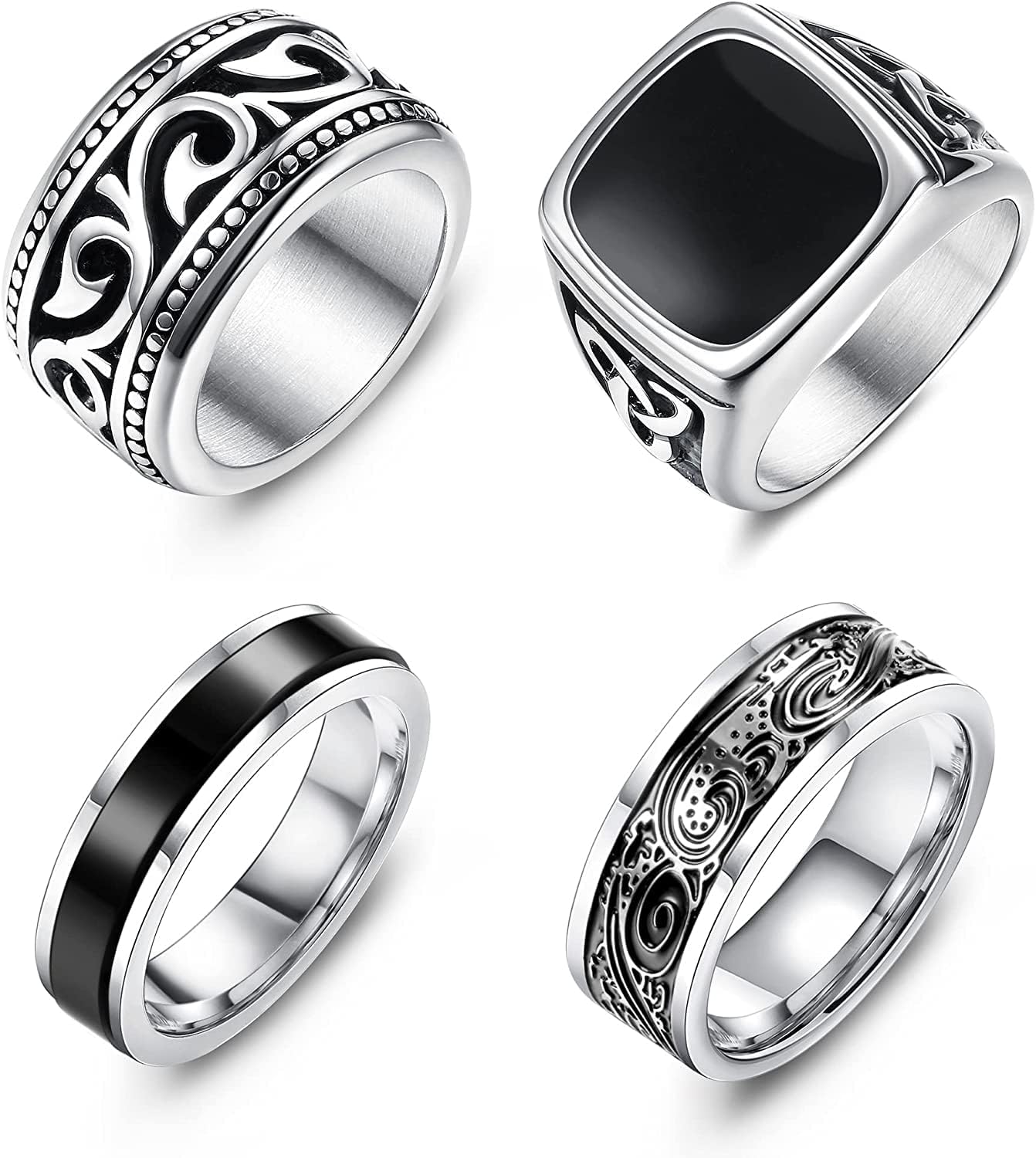 Adramata 4Pcs Stainless Steel Vintage Signet Rings for Men Pinky Thumb Biker Rings Set