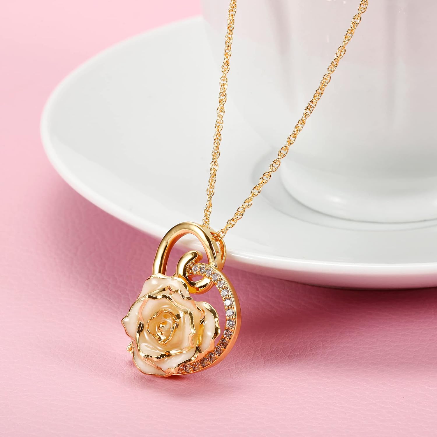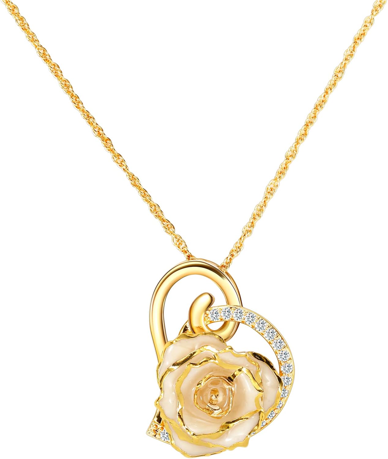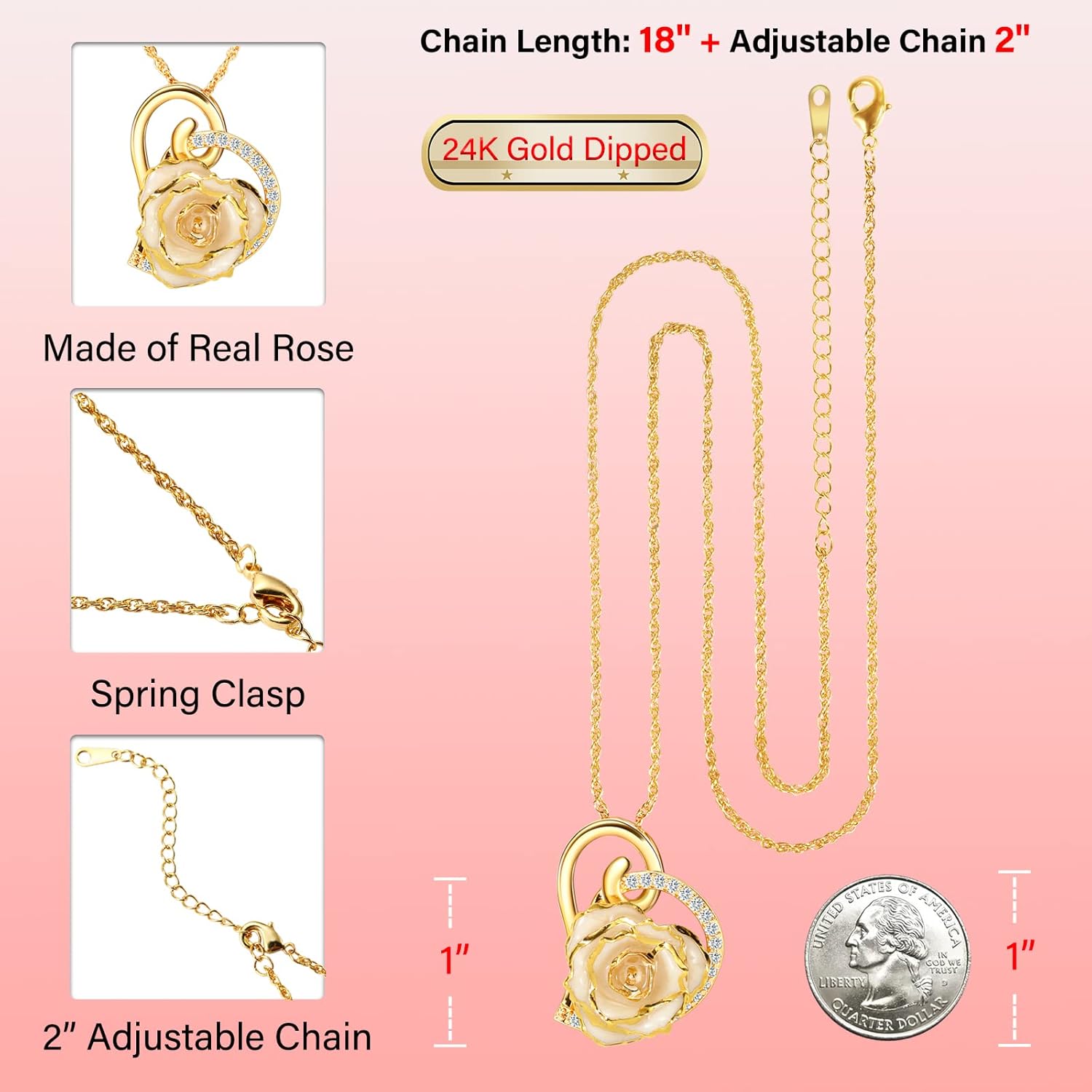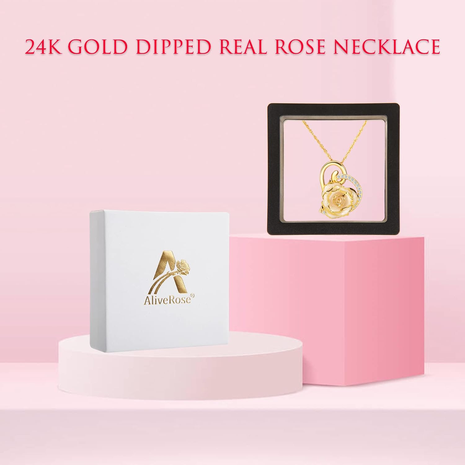 AliveRose Real Rose Gold Dipped Necklace Gifts for Women, 24K Gold Rose Pendant Necklace Jewelry Mothers Day Anniversaries Birthday Christmas Special Occasions Gifts for Her Mom Wife Girlfriend