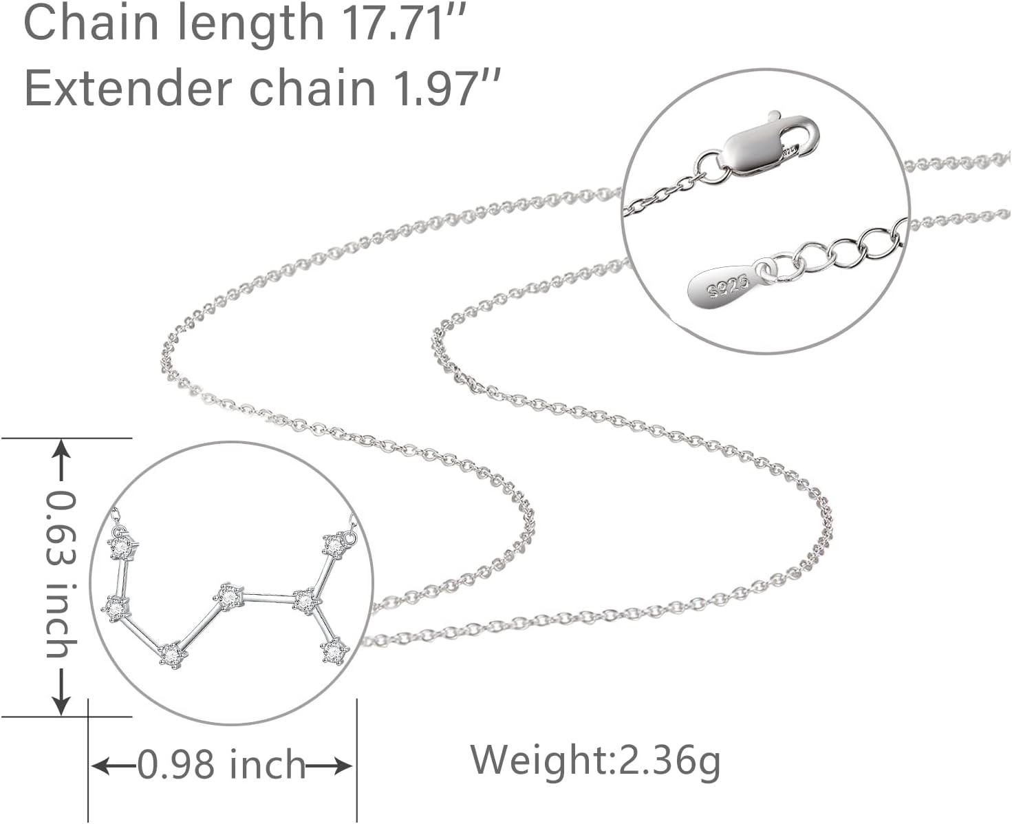 ALoveSoul 925 Sterling Silver Constellation Horoscope Zodiac Necklace, Gift for Women Girls