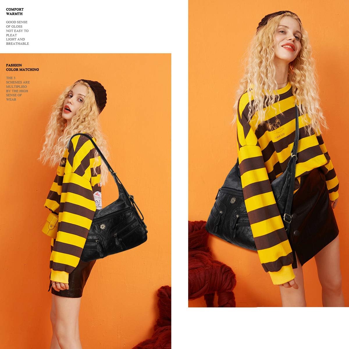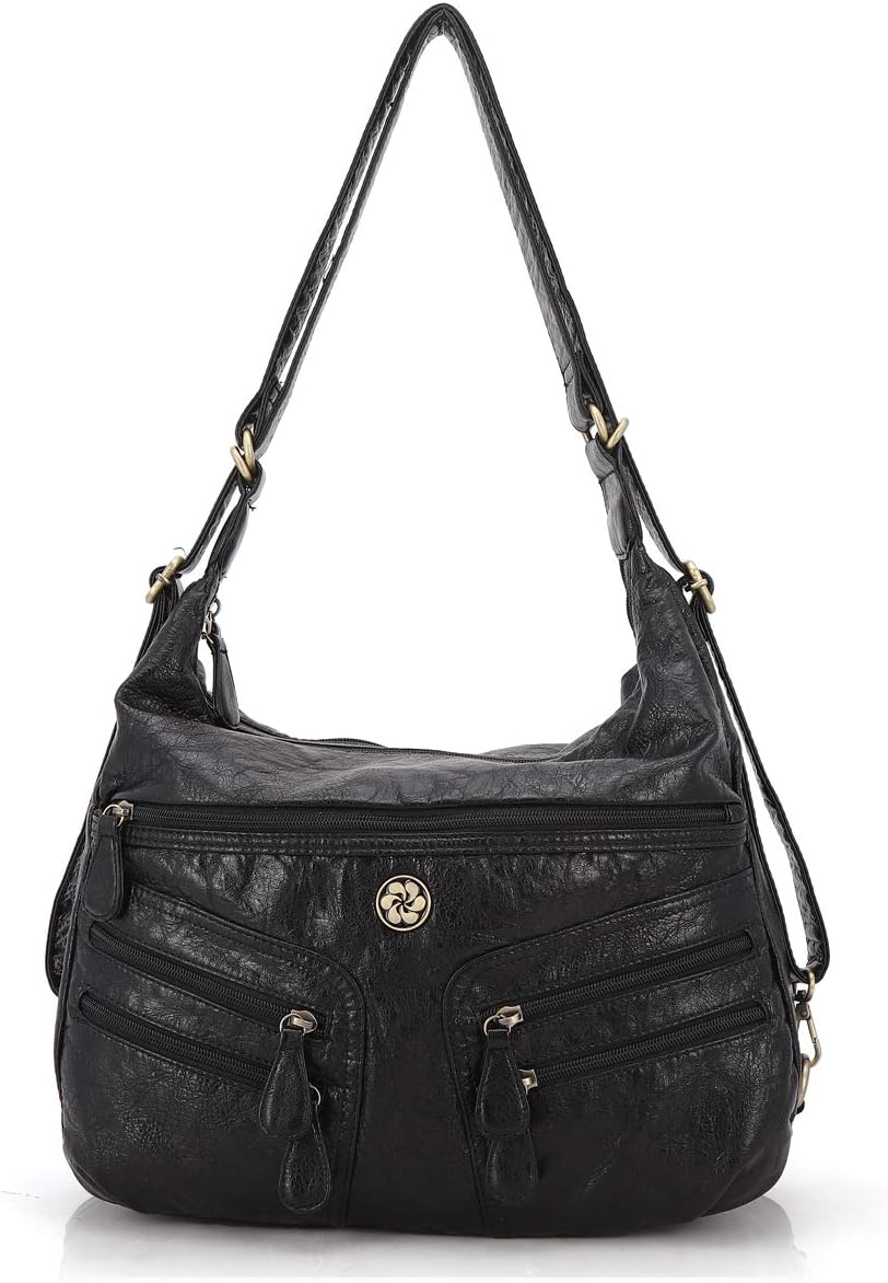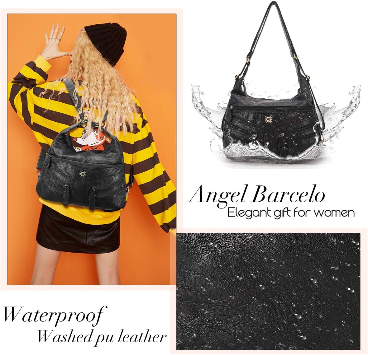 Angel Barcelo Women Multifunctional Soft Leather Handbag Purses Shoulder Hobo Backpack Crossbody Zipper Bag with Pocket