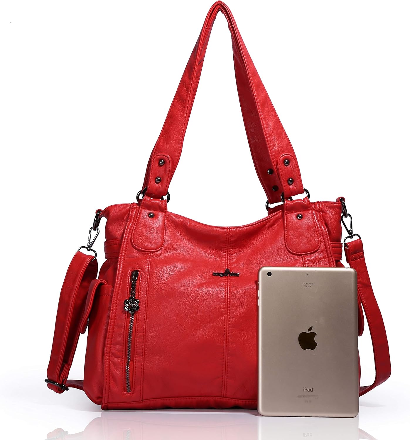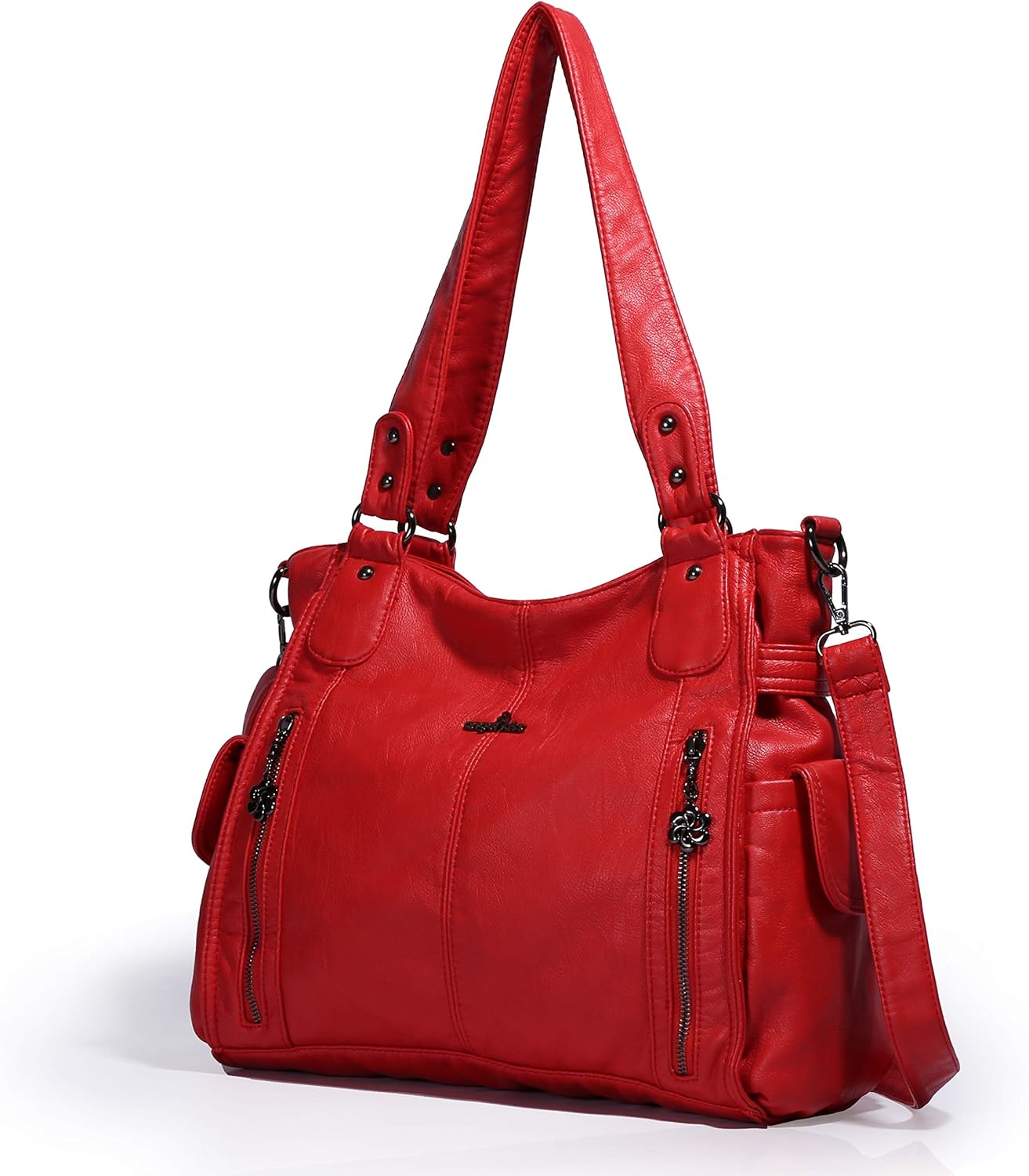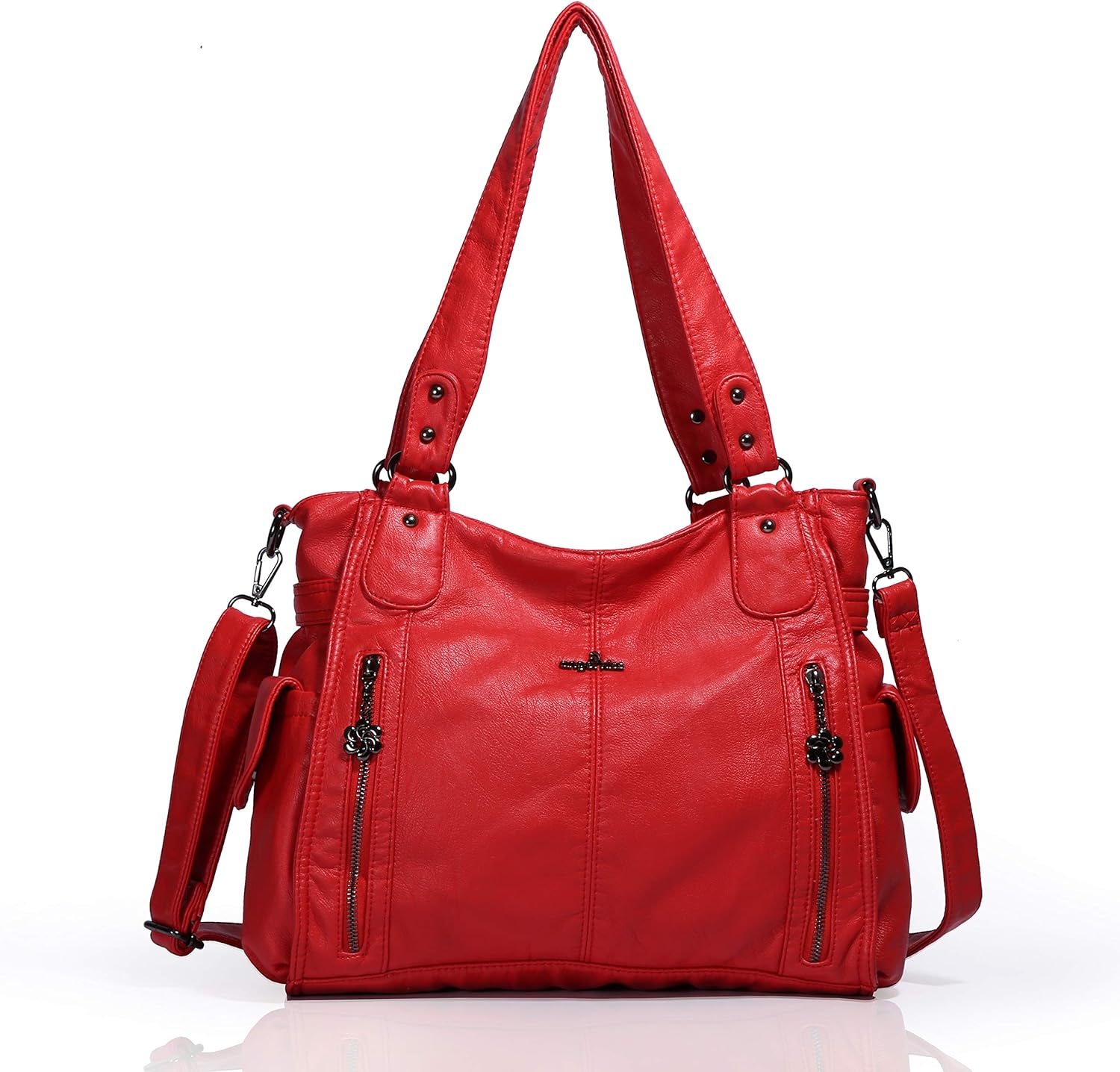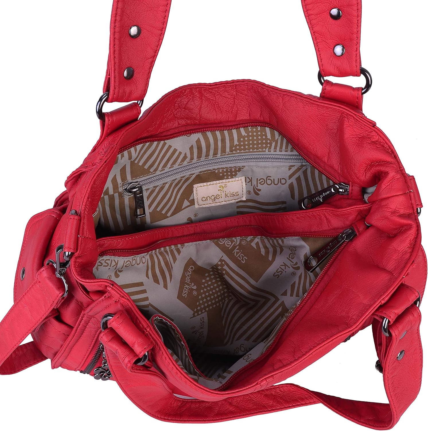 Angelkiss 2 Top Zippers Multi Pockets Women Handbags/Washed Leather Purses/Shoulder Bags 1193…