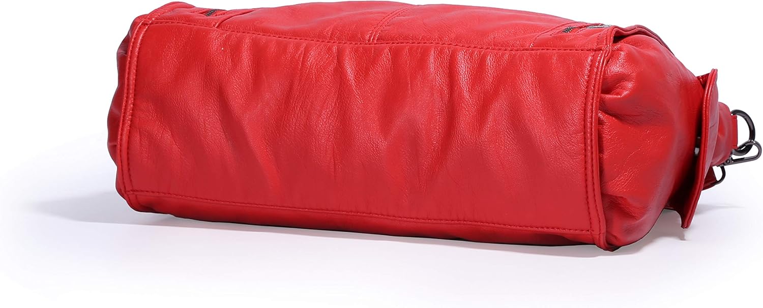 Customers appreciate the handbag’s color, design, and softness. They find it spacious with multiple compartments and pockets. Many appreciate the build quality, describing it as well-made and holding its shape nicely. While most customers consider it a good value for money, some have differing opinions on the size, color accuracy, and zipper quality.