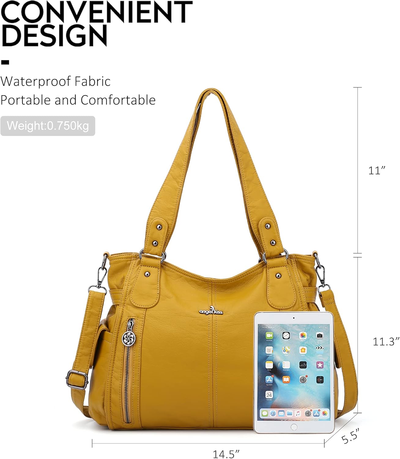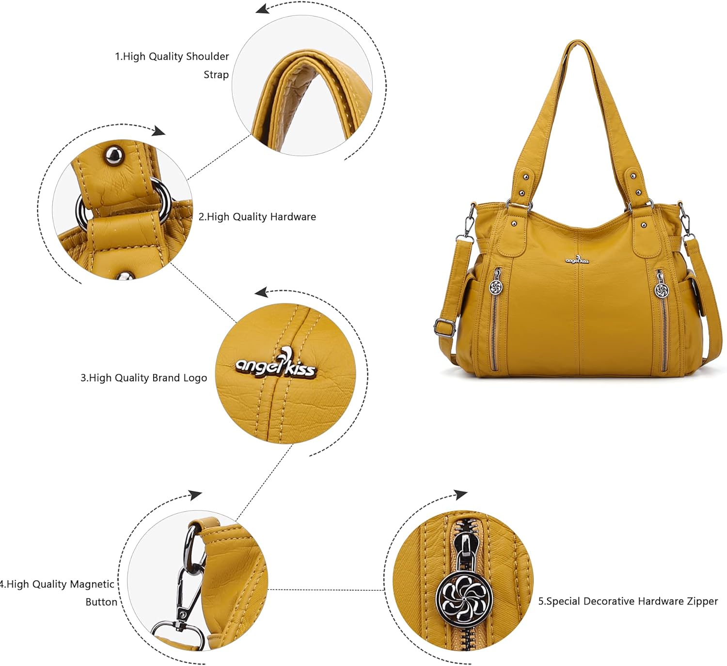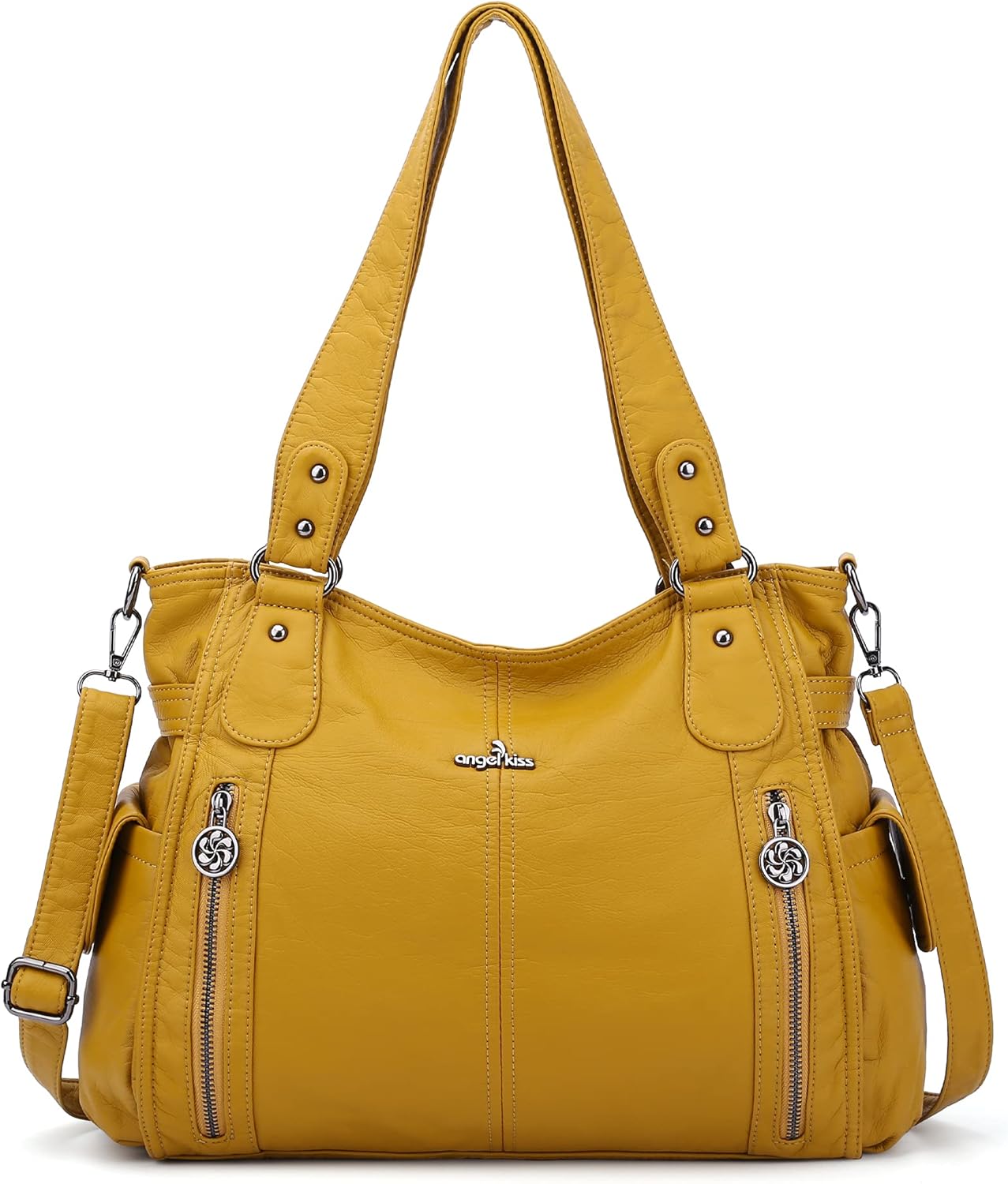 Angelkiss 2 Top Zippers Multi Pockets Women Handbags/Washed Leather Purses/Shoulder Bags 1193…