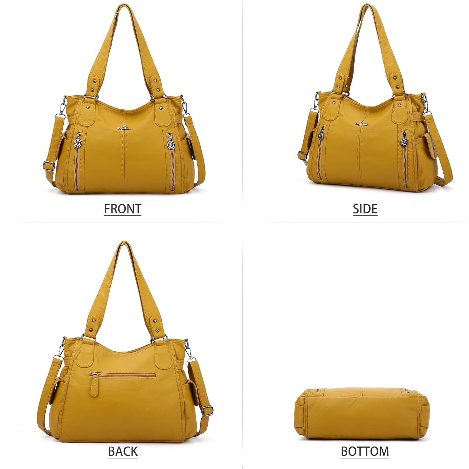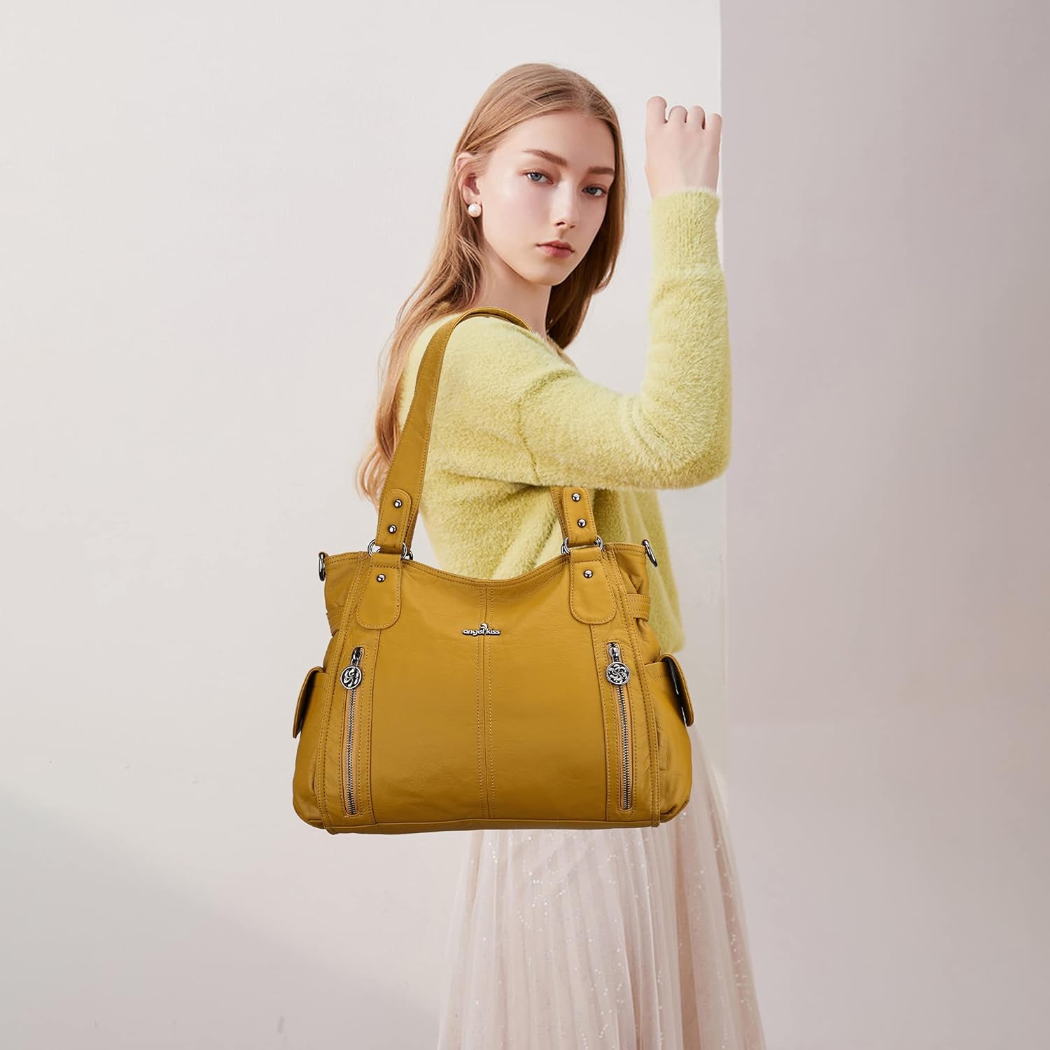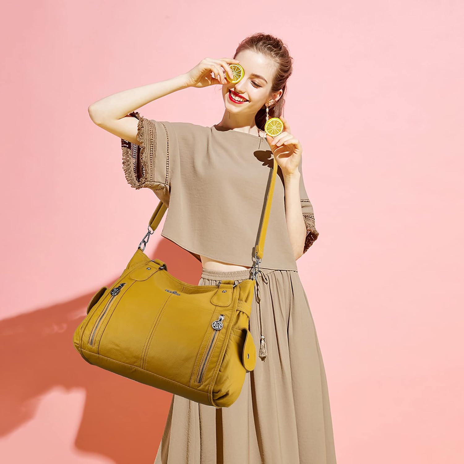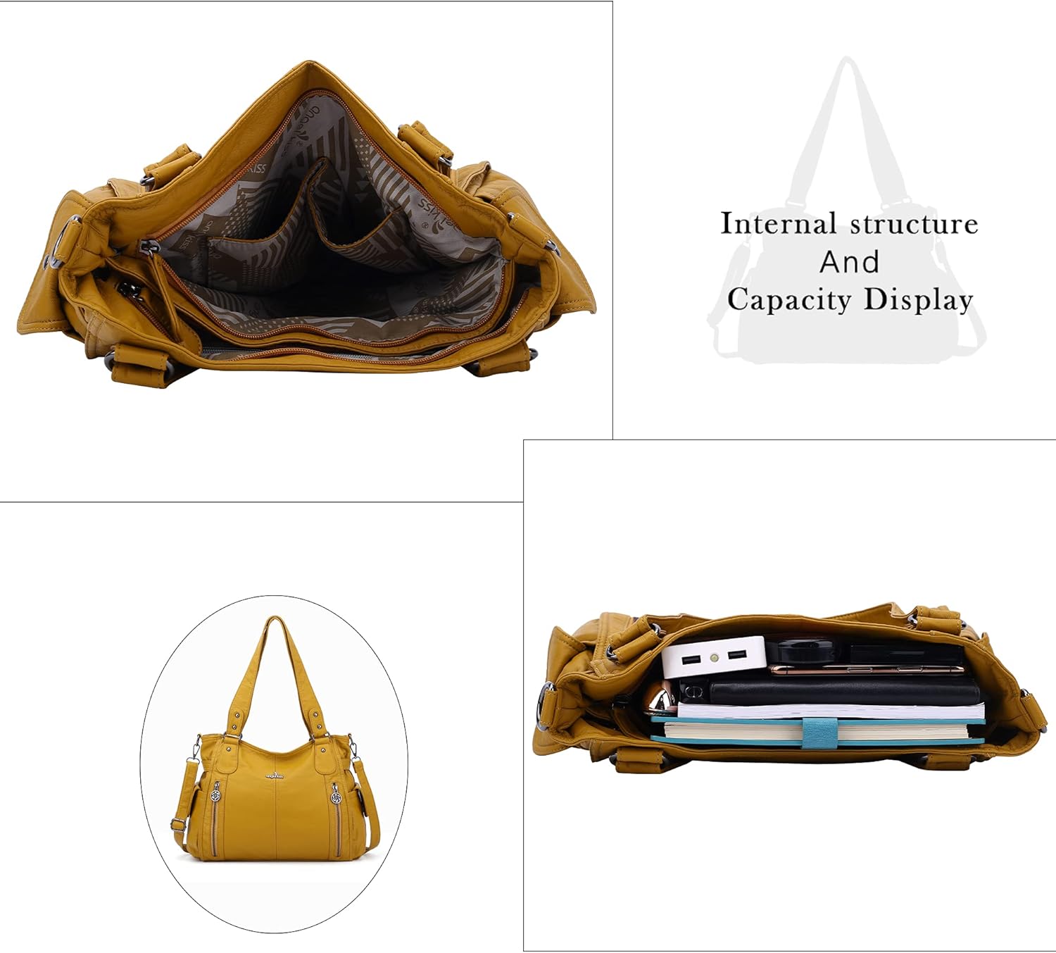 Angelkiss 2 Top Zippers Multi Pockets Women Handbags/Washed Leather Purses/Shoulder Bags 1193…