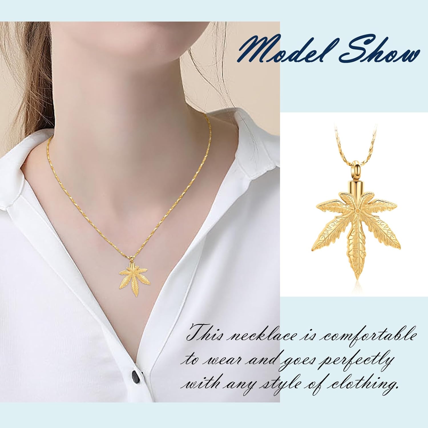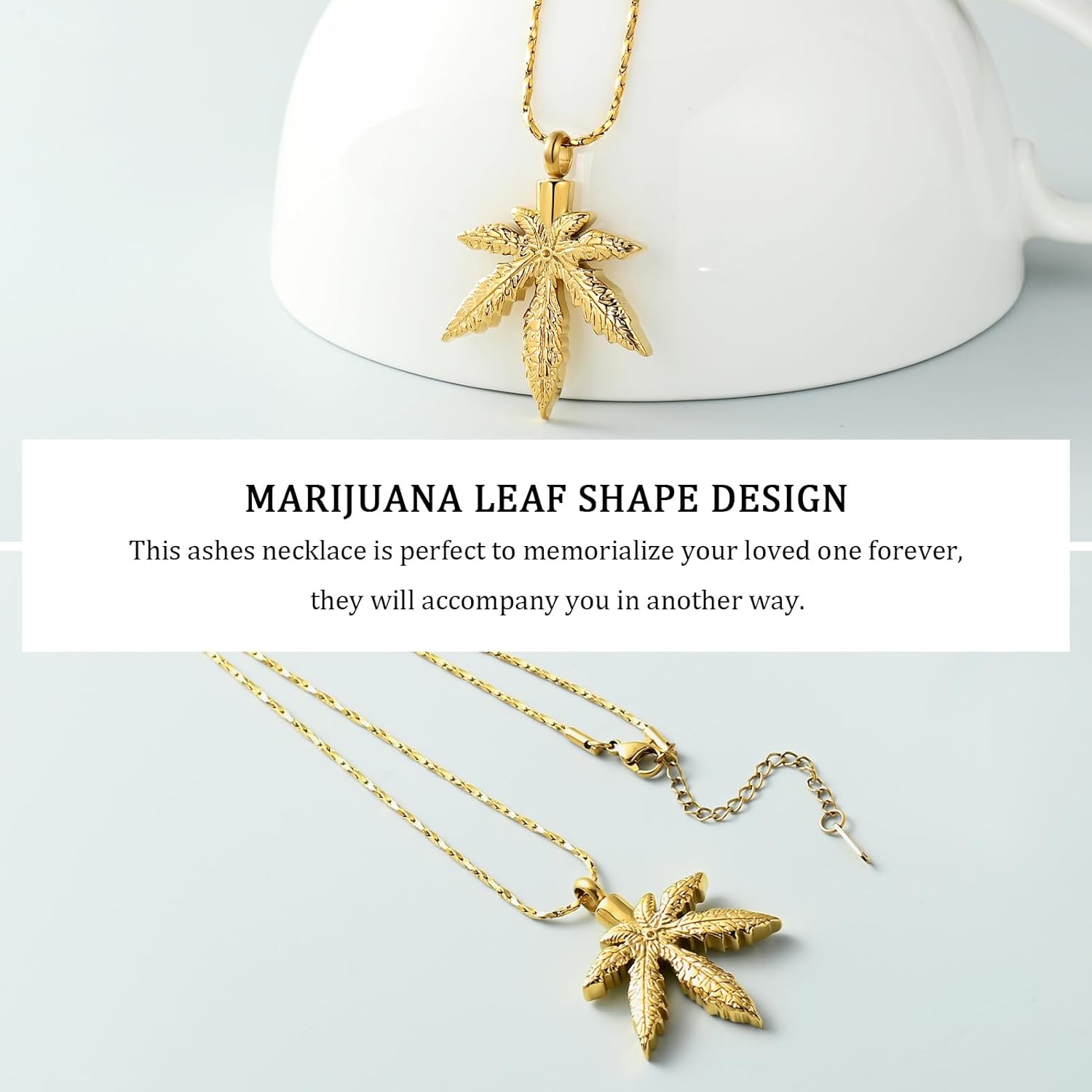 Marijuana Leaf Urn Necklace for Ashes for Men Women