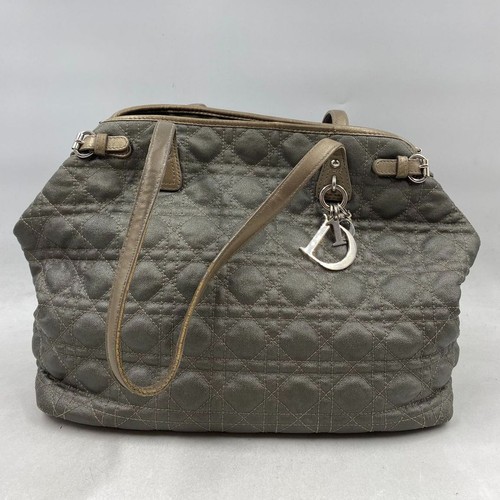 Authentic Christian Dior Cannage Panarea Metallic Grey Tote