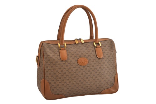 Authentic GUCCI Vintage Micro GG PVC Leather Hand Boston Bag Brown Junk 0290N