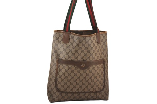 Authentic GUCCI Web Sherry Line Shoulder Tote Bag GG PVC Leather Brown 0450N