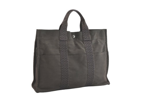 Authentic HERMES Vintage Her Line MM Hand Tote Bag Nylon Gray Junk 9504M