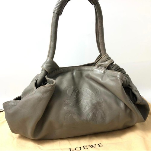 Authentic LOEWE Nappa Aire Hand Bag Leather Anagram Logo Gray Vintage 010810