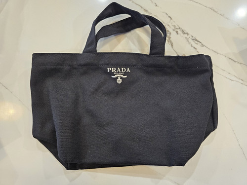 Authentic Prada Black Soft Canvas Cosmetics Bag Beauty Shoulder Tote VIP Gift