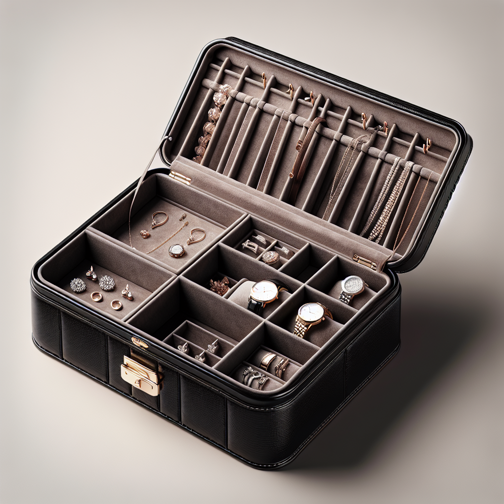 WATCH & JEWELRY COMBO CASE: Holds 4 watches; 7 necklace holder hooks hold 8-9 of necklaces and pendants; 8 large compartments in 2 layers hold lots of earrings, rings, bracelets, cufflinks, etc. 1 storage pocket prevents jewelry from tangling. You will have fun using the watch jewelry box every day and seeing all jewelry well organized and laid out so that you can see everything you own and can wear jewelry more often