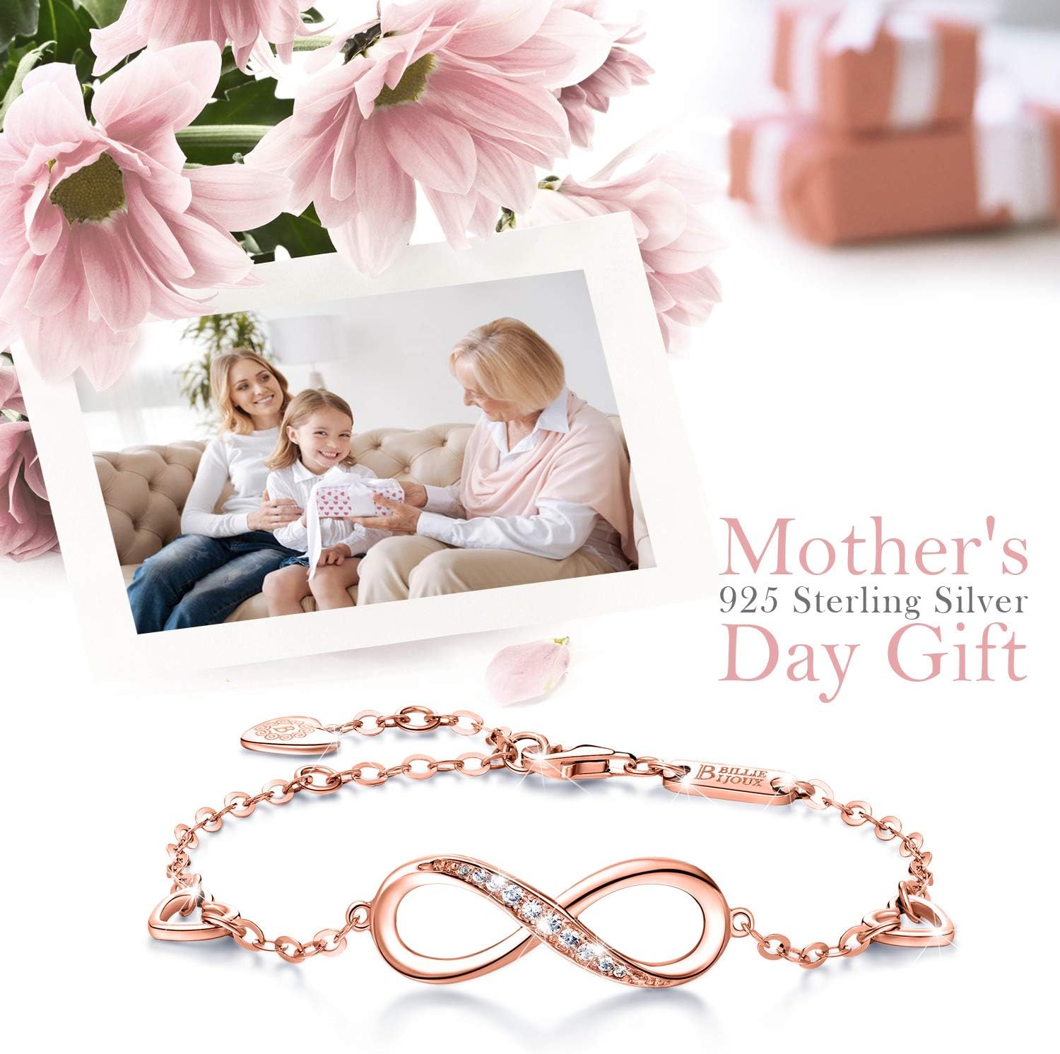 Billie Bijoux Bracelet for Women 925 Sterling Silver Infinity Bracelet Endless Love Symbol Charm Adjustable Bracelets for Women Gifts for Women Mom Wife