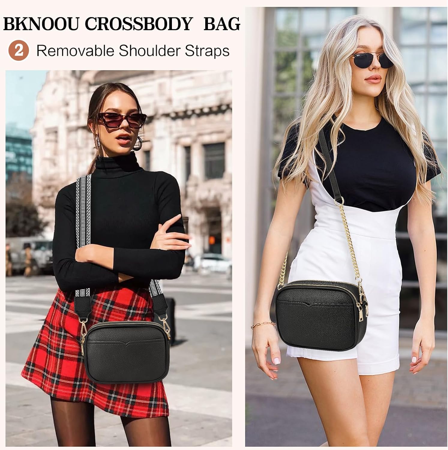 BKNOOU Crossbody Bag for Women Small Purses for Ladies Crossbody PU Leather Shoulder Handbag with 2 styles Adjustable Strap