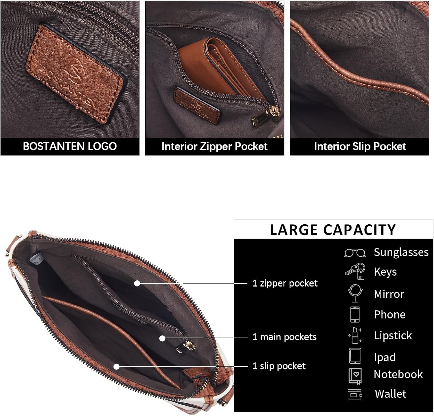 BOSTANTEN Purses For Women Leather Handbags Crossbody Purse Ladies Hobo Shoulder Bag with Adjustable Strap