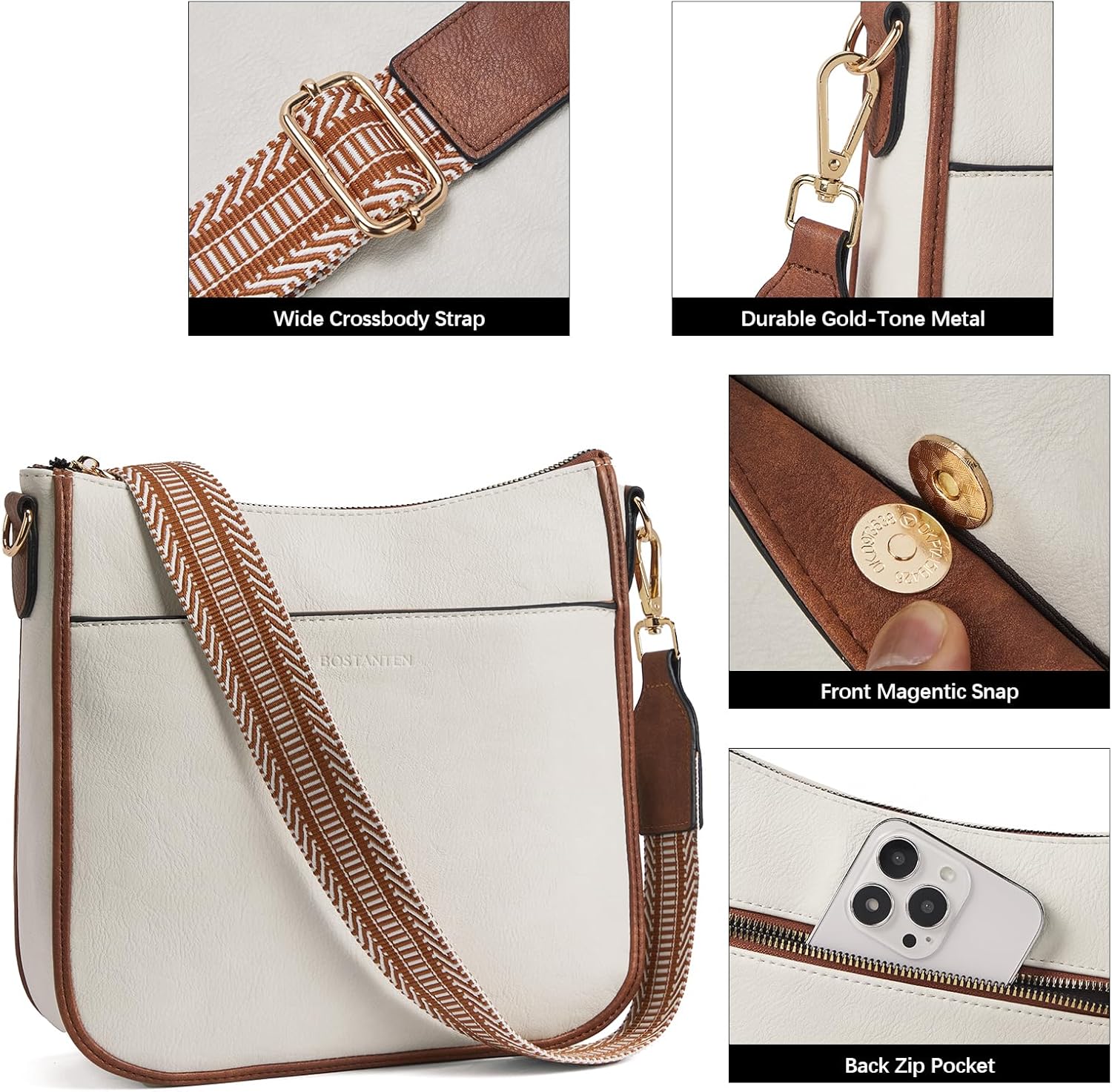 BOSTANTEN Crossbody Bags for Women Leather Hobo Shoulder Bags with Colored Strap