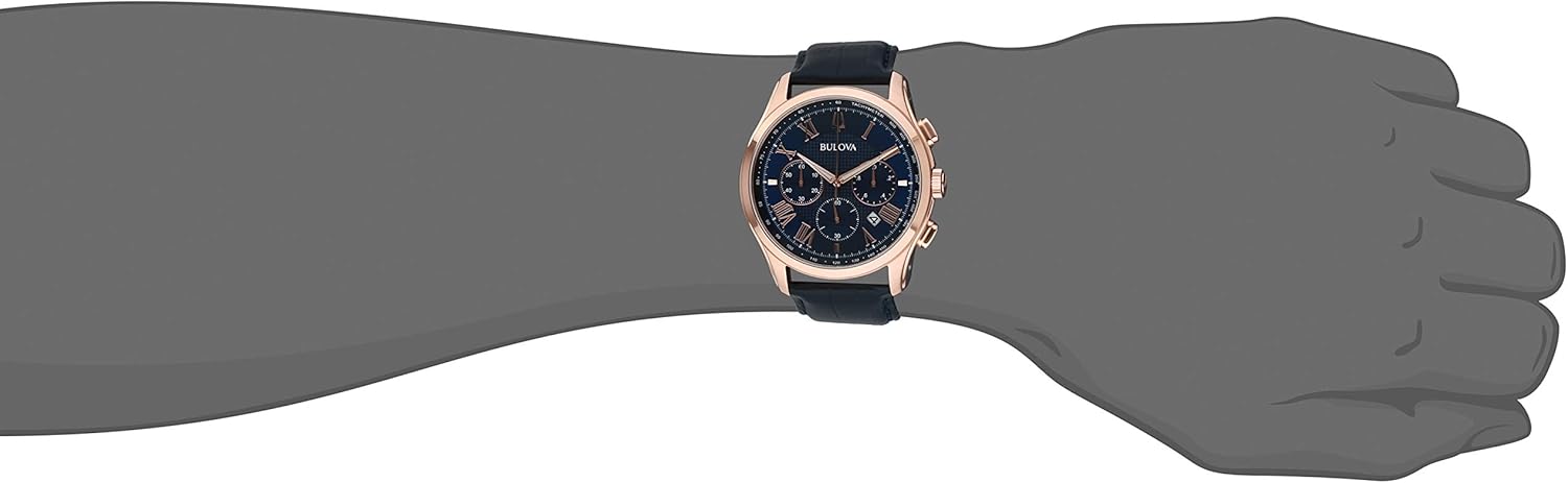 Bulova Men’s Classic Wilton 3-Hand 21-Jewel Watch, 60 Hour Power Reserve, Luminous Hands, Open Aperture, Roman Numeral Markers Domed Sapphire Crystal, 43mm