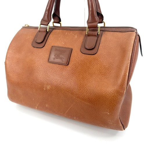 Burberry Boston Bag Nova Check Brown Leather Authentic From Japan 0446