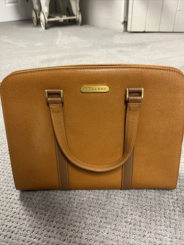 Burberry Brown Leather Hand Bag With Haymarket Check Interior