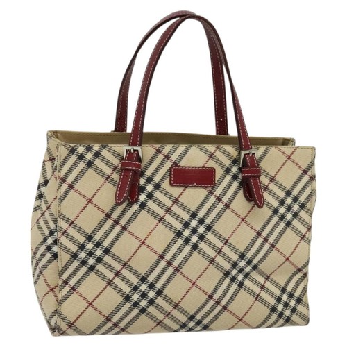 BURBERRY Nova Check Blue Label Hand Bag Canvas Beige Wine Red Silver Auth 122612