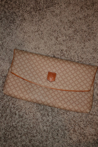 Celine Macadam Pattern Shoulder Bag Tote Authentic Brown Logo Aqua Handles
