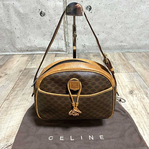 CELINE Macadam Pattern Travel Hand Bag PVC Leather Brown Gold Italy 69ED734