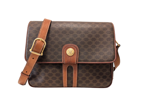 CELINE Shoulder Bag Macadam Purse PVC Leather Brown Vintage Authentic