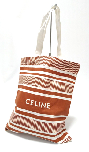 CELINE VIP Gift Orange Stripes Canvas Cotton Tote Shoulder Bag Size:S