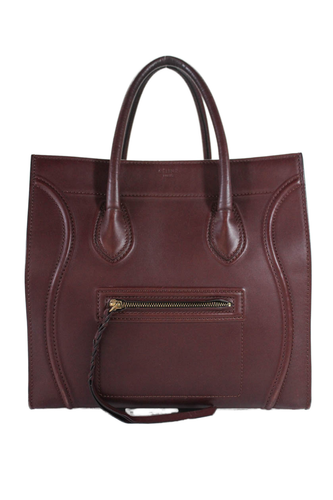 Celine Womens Leather Luggage Phantom Medium Shoulder Bag Handbag Dark Red