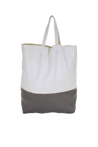 Celine Womens Smooth Leather Vertical Bi-Cabas Tote Bag Handbag White Gray