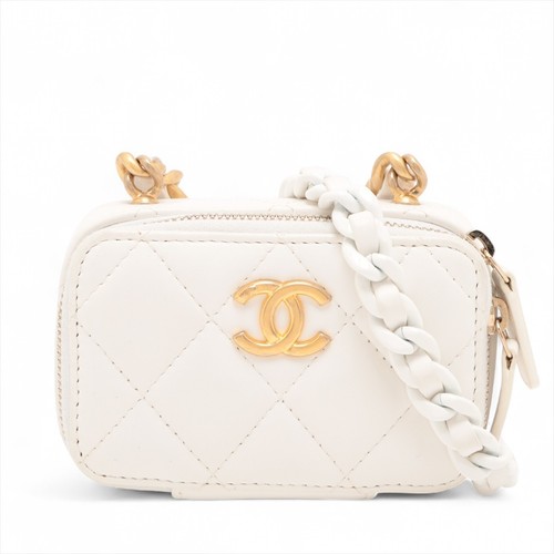 Chanel Matelasse Lambskin Chain Shoulder Bag Coin purse White Gold Metal Fitting