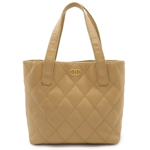 CHANEL Wild Stitch Coco Mark Tote Bag Handbag Leather Beige Gold Hardware A18126