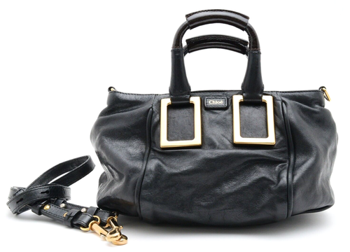 Chloe [Rank Alomost A] Ethel 2way Crossbody Hand Bag Purse Leather Black Gold