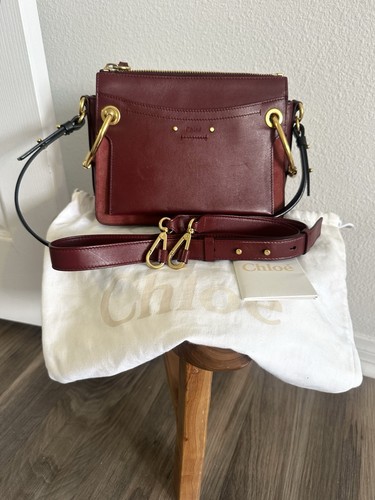 Chloe Roy Two Way Bag Shoulder Crossbody Leather Suede Maroon Burgundy Small