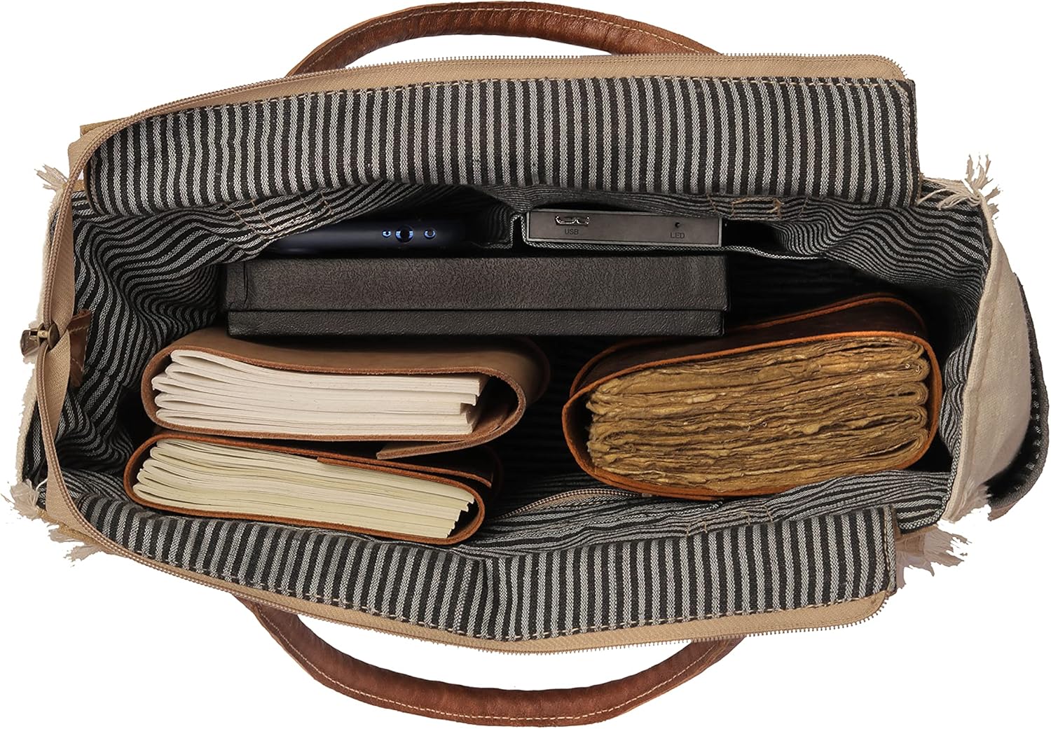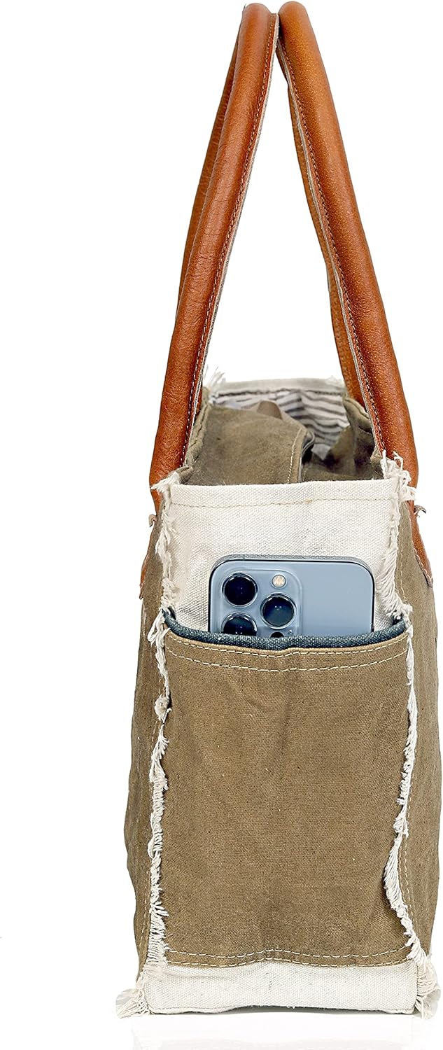 CLA Bags Sel De Mer Upcycled Canvas Hand Bag Upcycled Canvas & Cowhide Tote Bag Radiant Upcycled Canvas & Cowhide Leather Bag