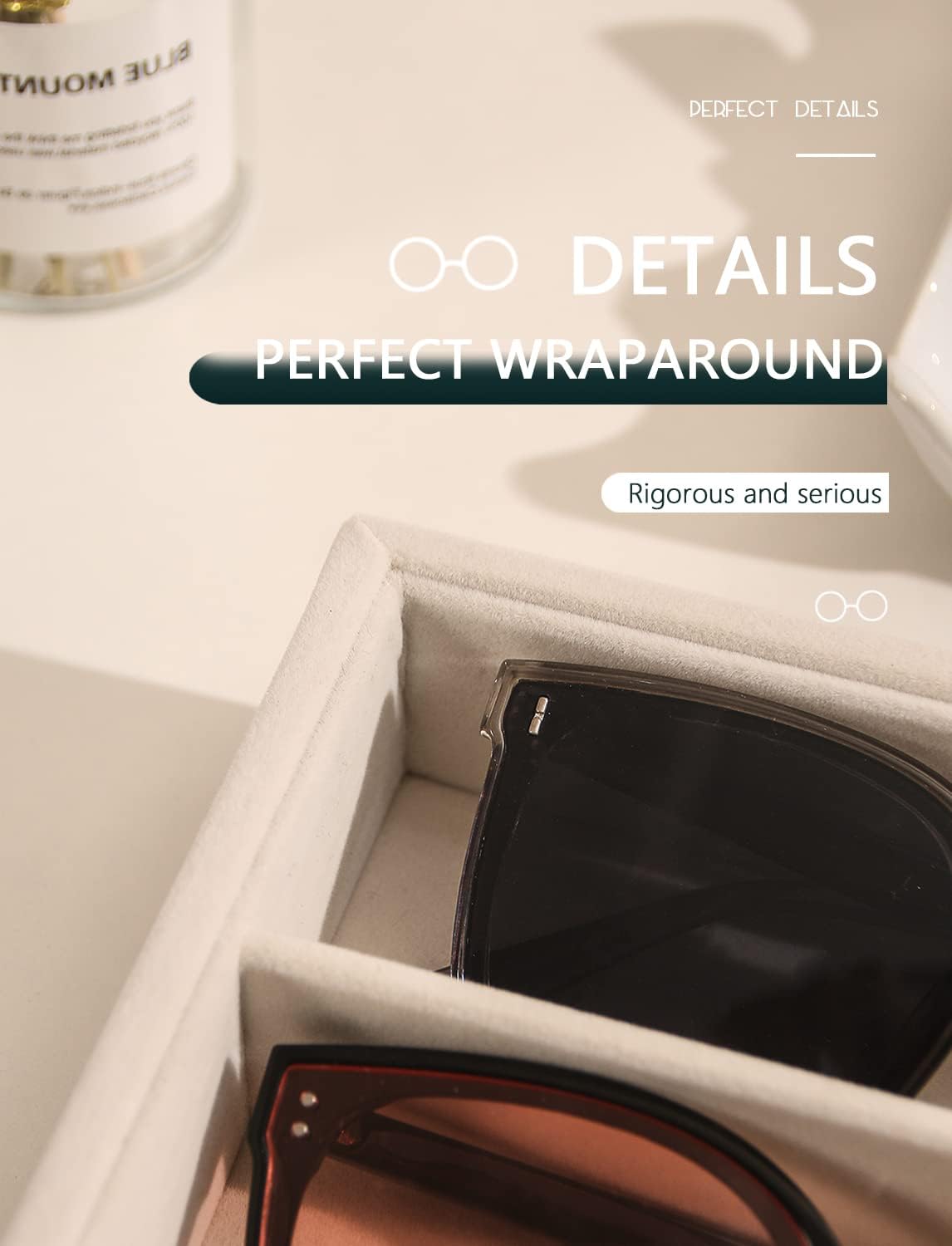 Coward Stackable Sunglass Organizer Tray Beige Velvet Glasses Organizer Trays eyeglasses Watches Jewelry Display Organizer Box for Men Women 8 Grids