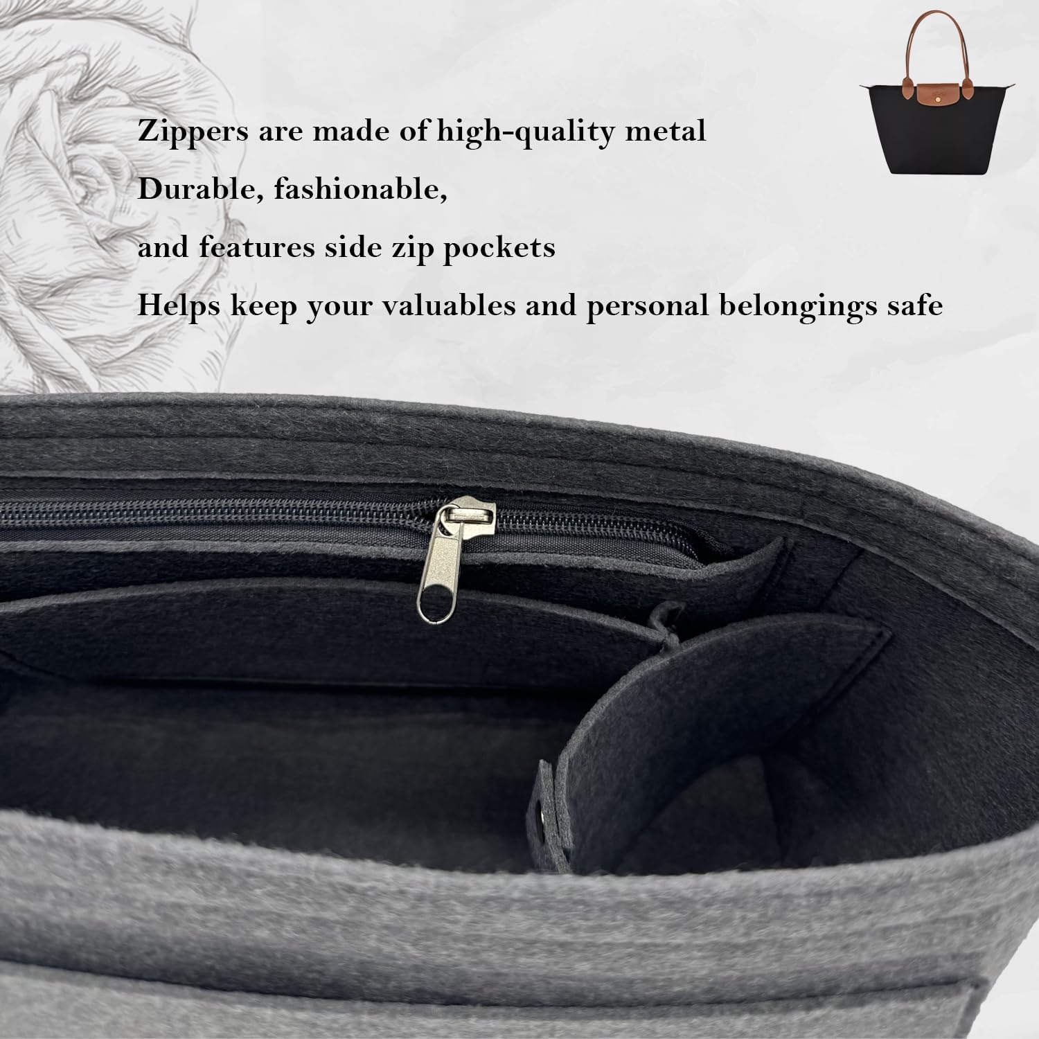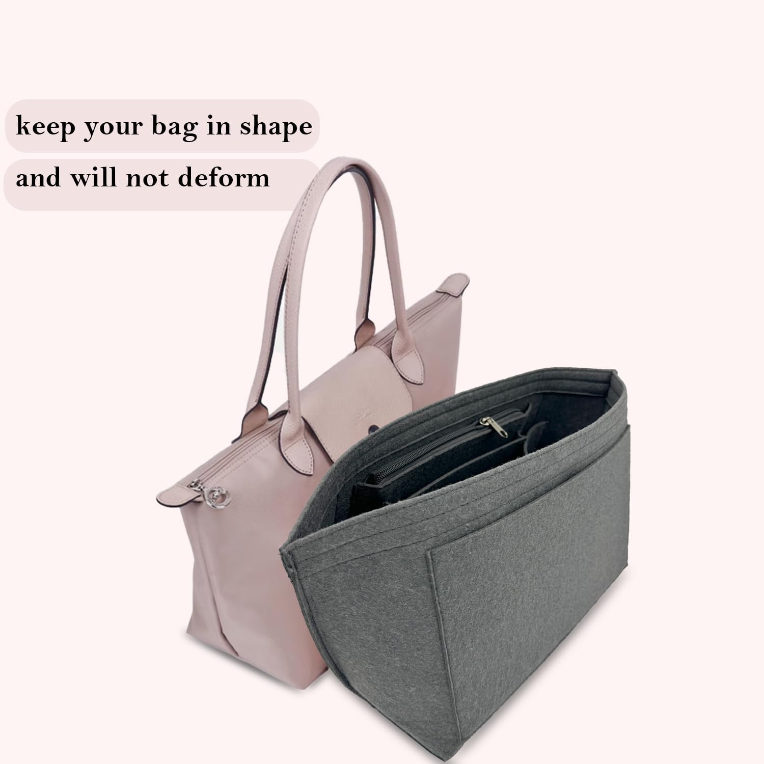 D.DUO Purse Organizer Insert, Bag Organizer for Le Pliage, Handbags Organizer Insert(Grey, Large)