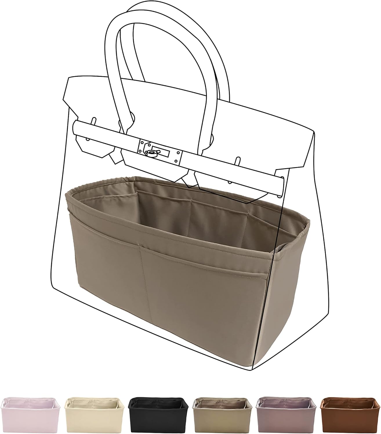 DGAZ Purse Organizer Silky Smooth,Silk,Luxury Handbag Tote in Bag Shapers, Women- Fits Birkin25/30/35/40 Bags (Etoupe grey, BK30)