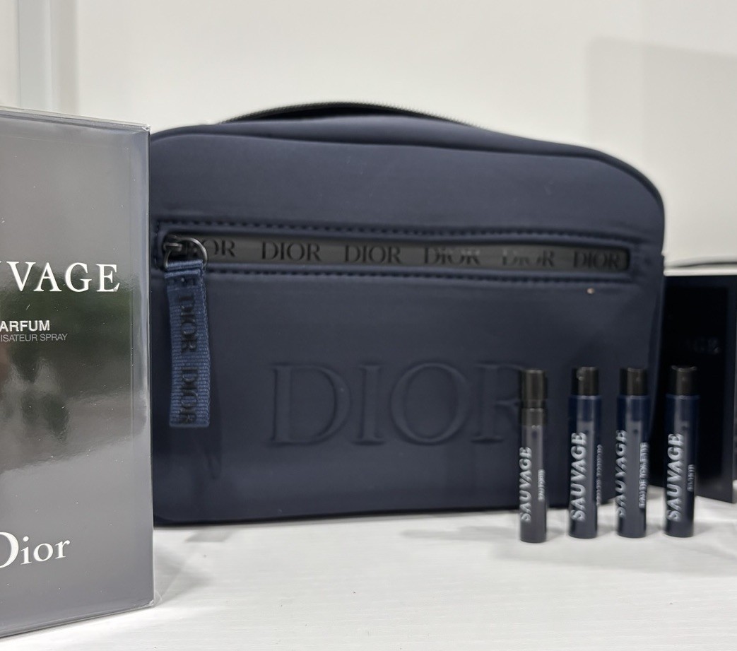 Dior Men’s Navy Blue Pouch Clutch Bag + 4 Parfum Unopened – Travel Zip Bag 2025