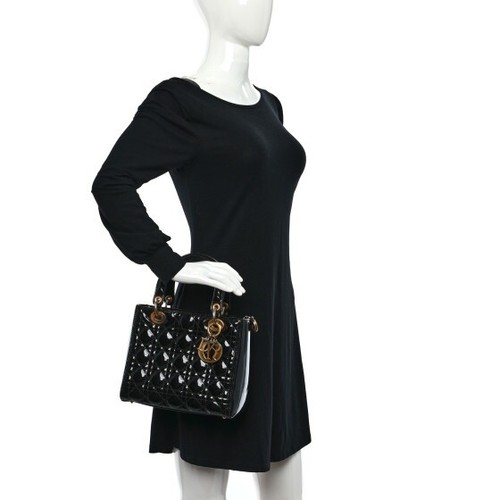 Dior Womens Medium Lady Dior Bag in Patent Cannage Calfskin