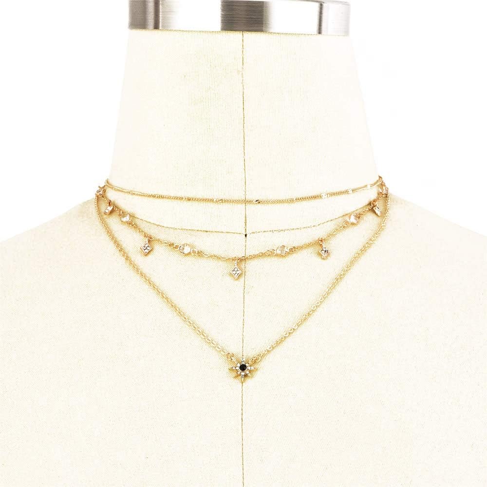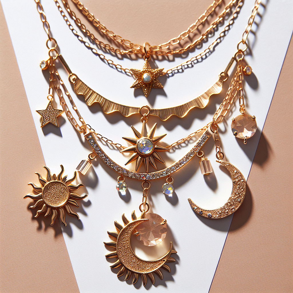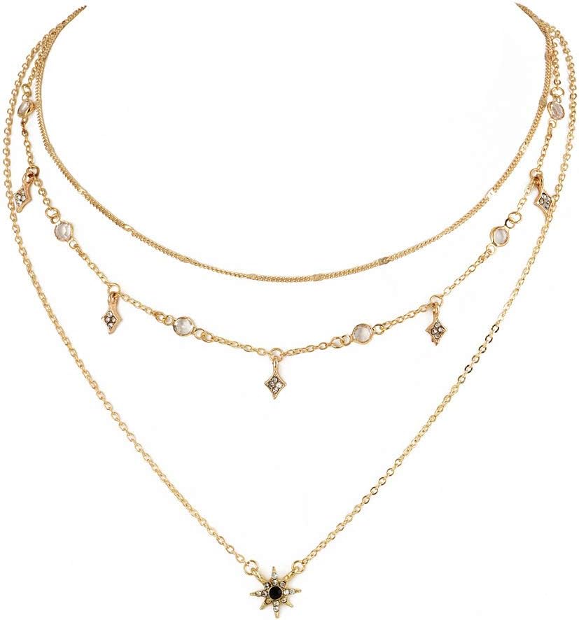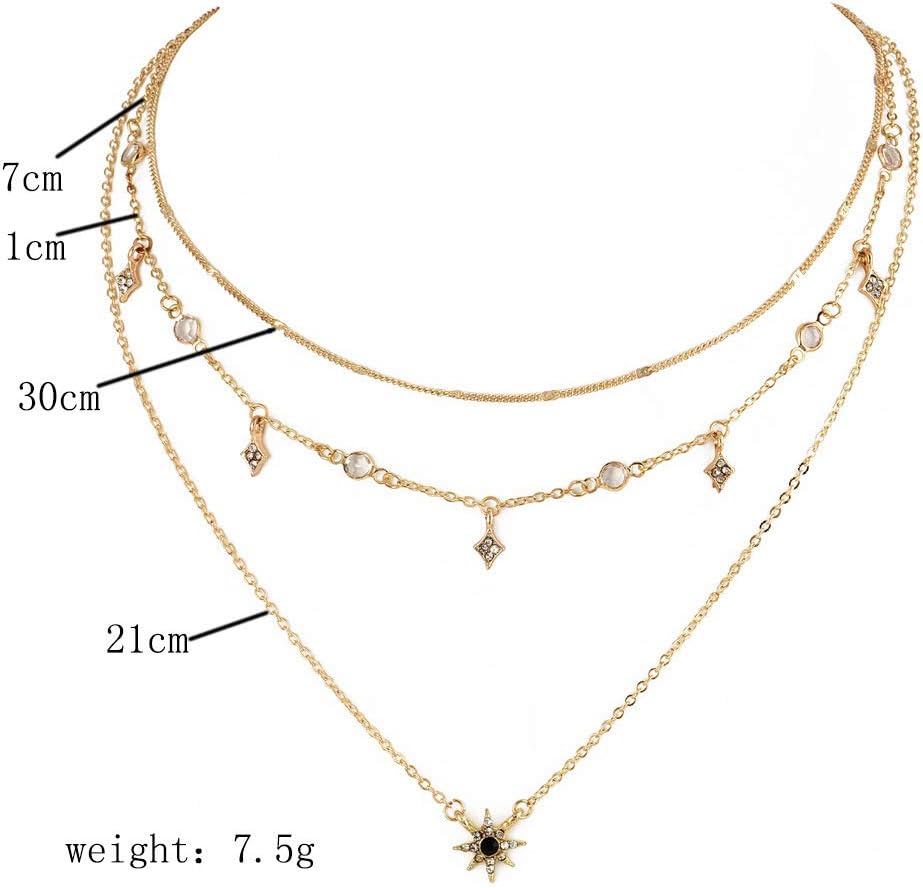 DoubleNine Multilayer Necklace Sun Star Golden Crescent Pendant Gold Medal Sequins Women Crystal Necklace Layered Delicate Collar