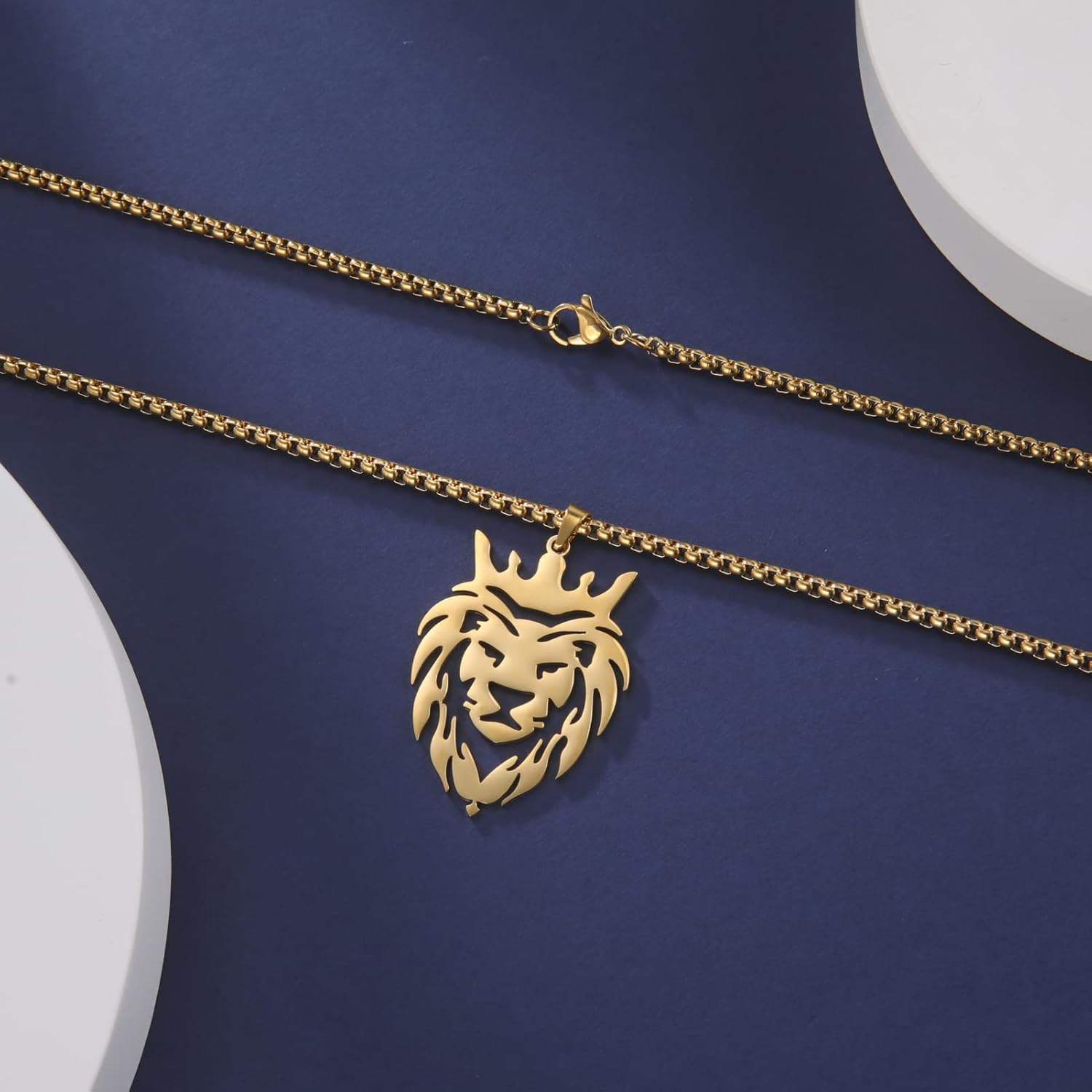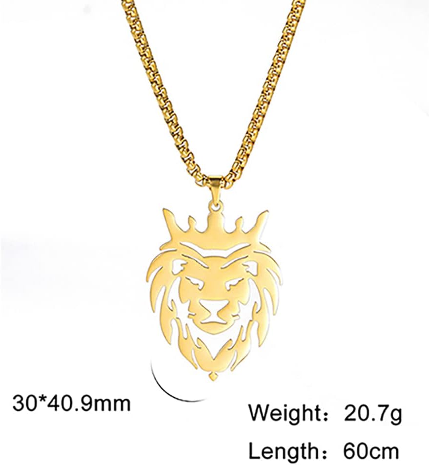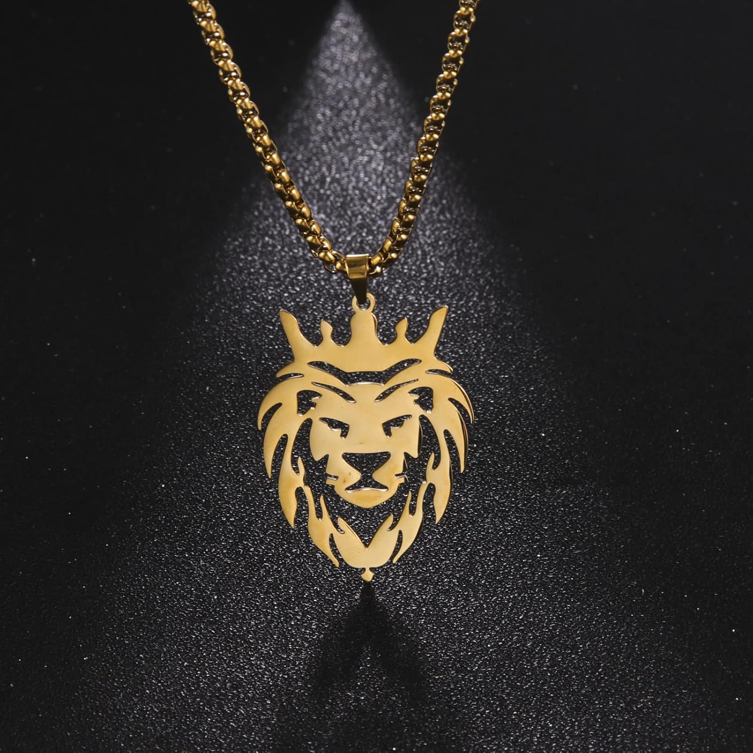 Dreamtimes Lion With King Crown Necklaces for Men Boys Punk Animal Stainless Steel Pendant Necklace Men’s Chain Fashion Jewelry Gothic Punk Rock Mens Pendant Necklace