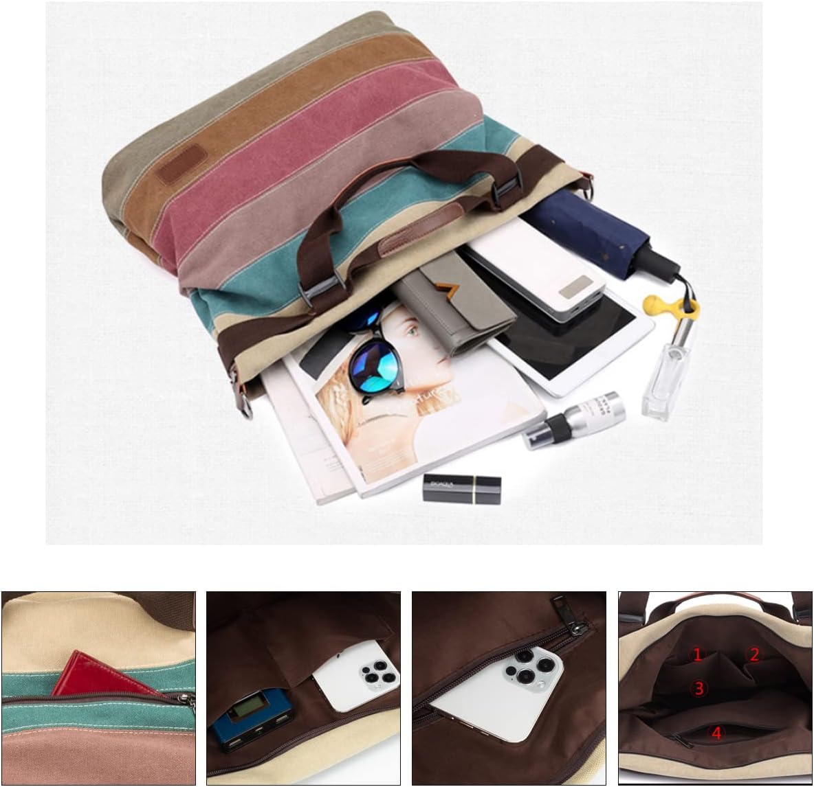 Eshow Women’s Canvas Handbag Purse Top Handle Tote Shoulder Bag Zippered Tote Crossbody Bag