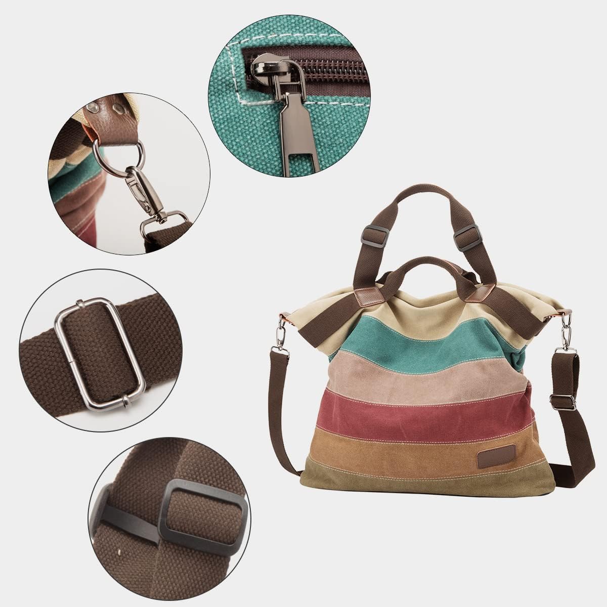 Customers appreciate the handbag’s style, size, and build quality. They find it well-made with thick canvas and sturdy straps. The colors are nice and muted, making it easy to match clothing. Many customers consider it a good value for money. However, some have differing opinions on the zipper quality, weight, and material thickness.