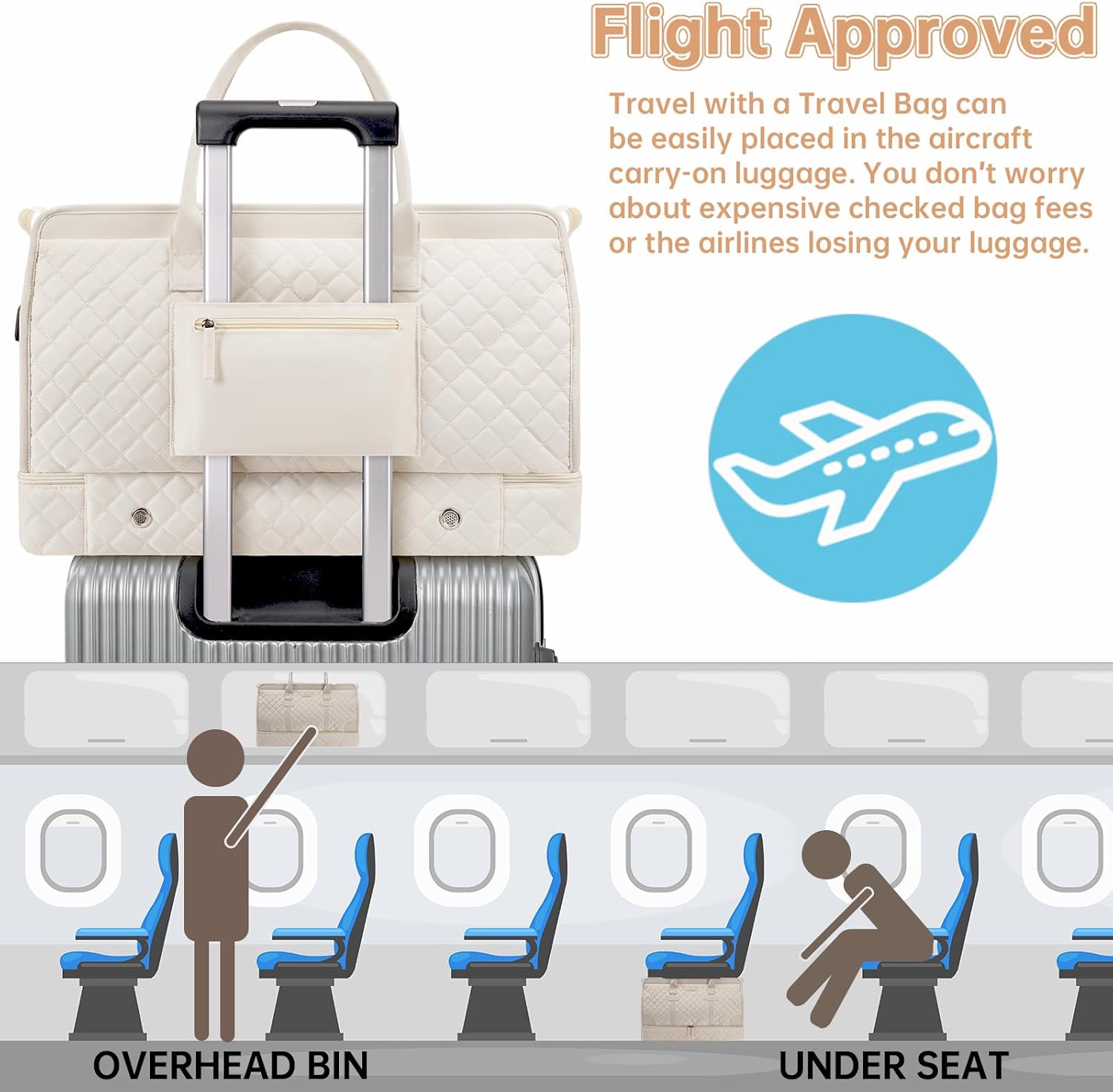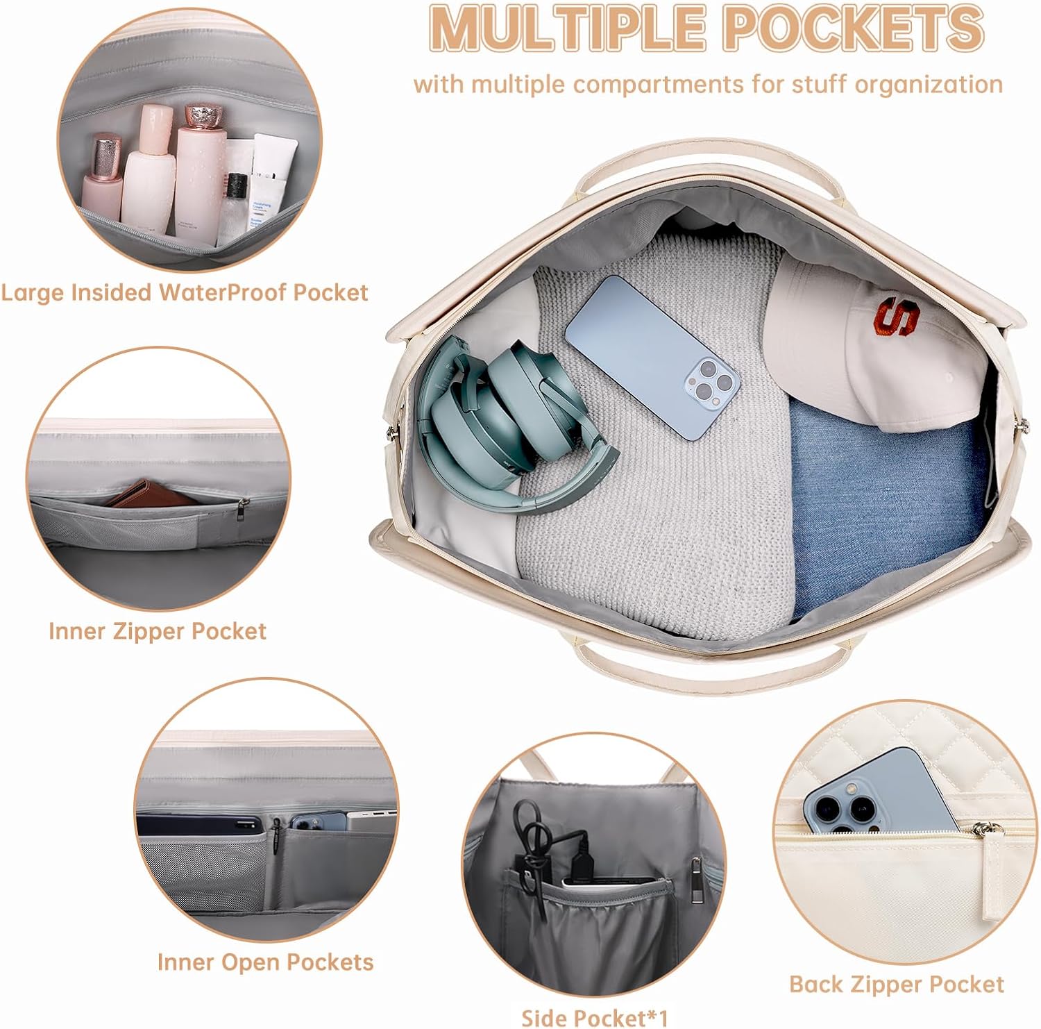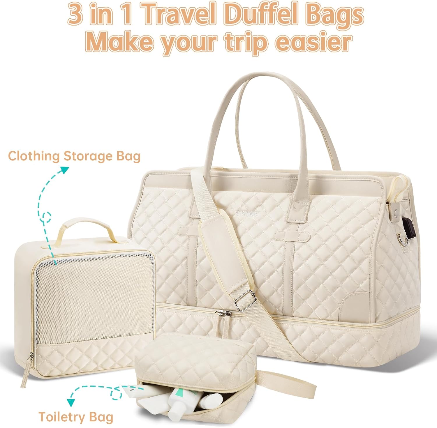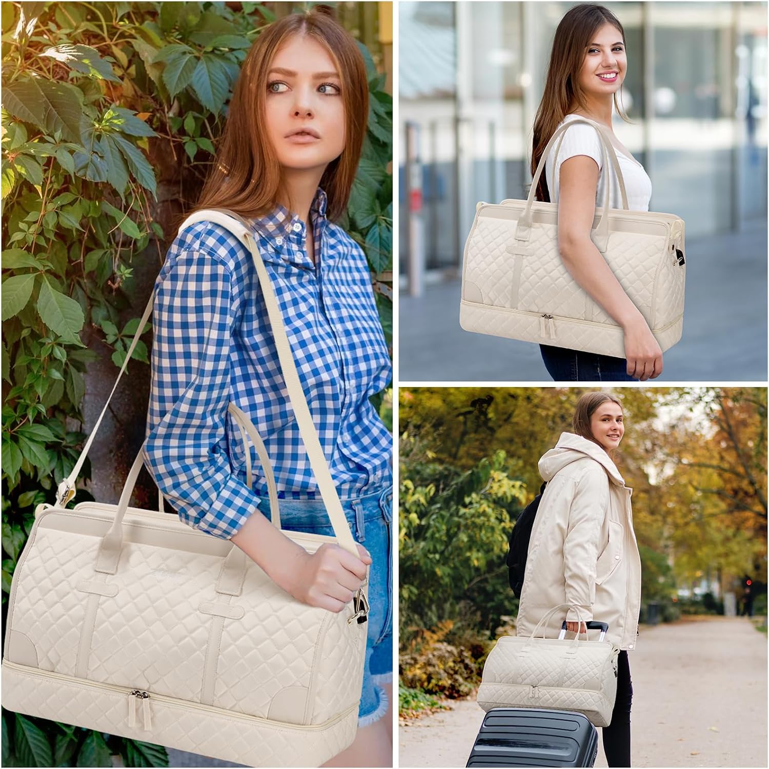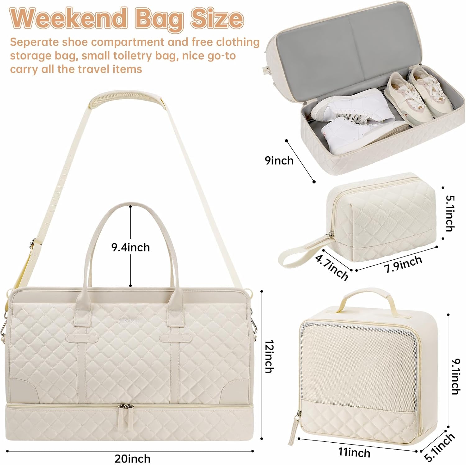 ETRONIK Weekender Overnight Bag for Women, Large Travel Duffle Bag with Shoe Compartment & Wet Pocket, Carry On Tote Bag Gym Duffel Bag with Toiletry Bag, Bag for Hospital 4 Pcs Set, Beige-1