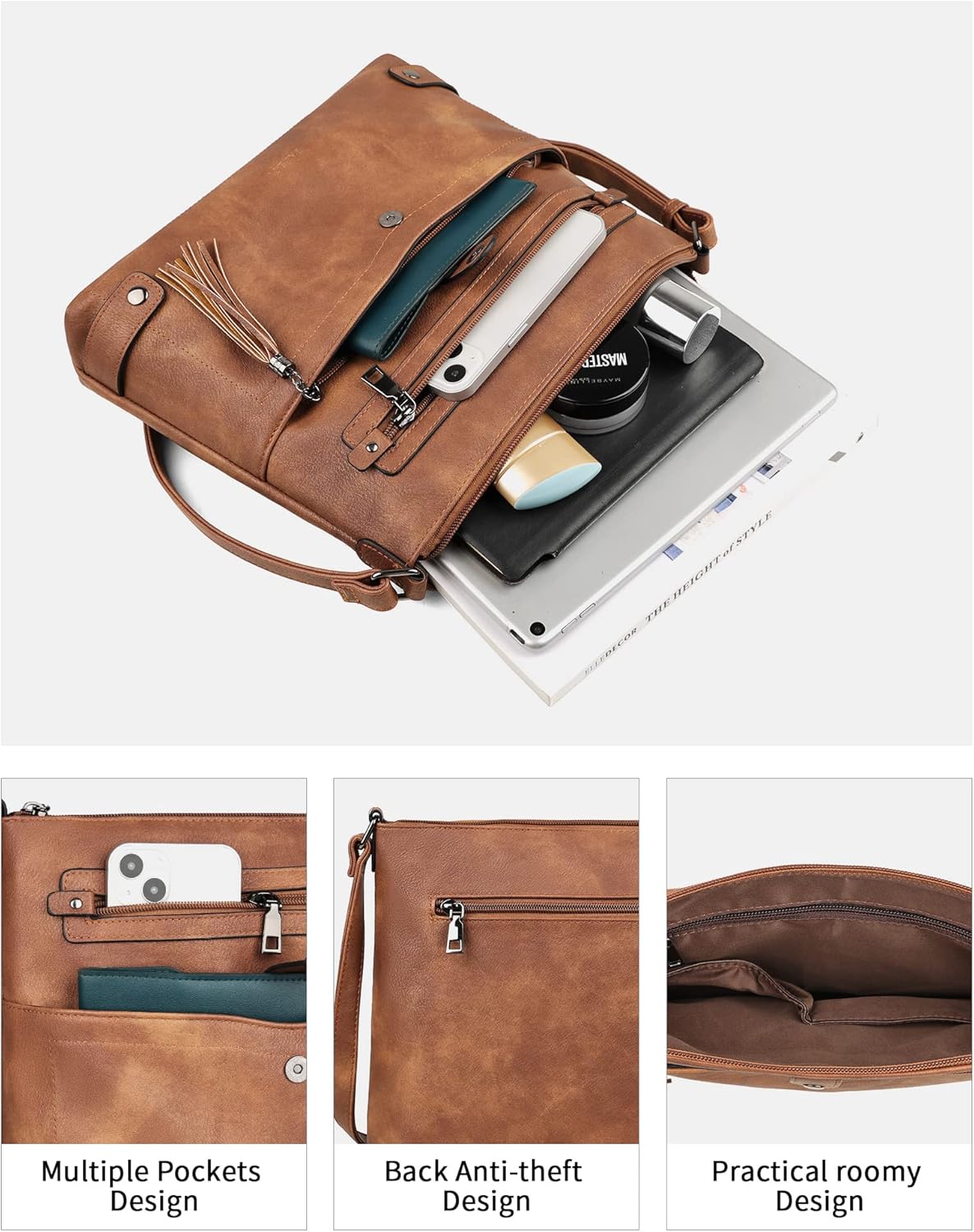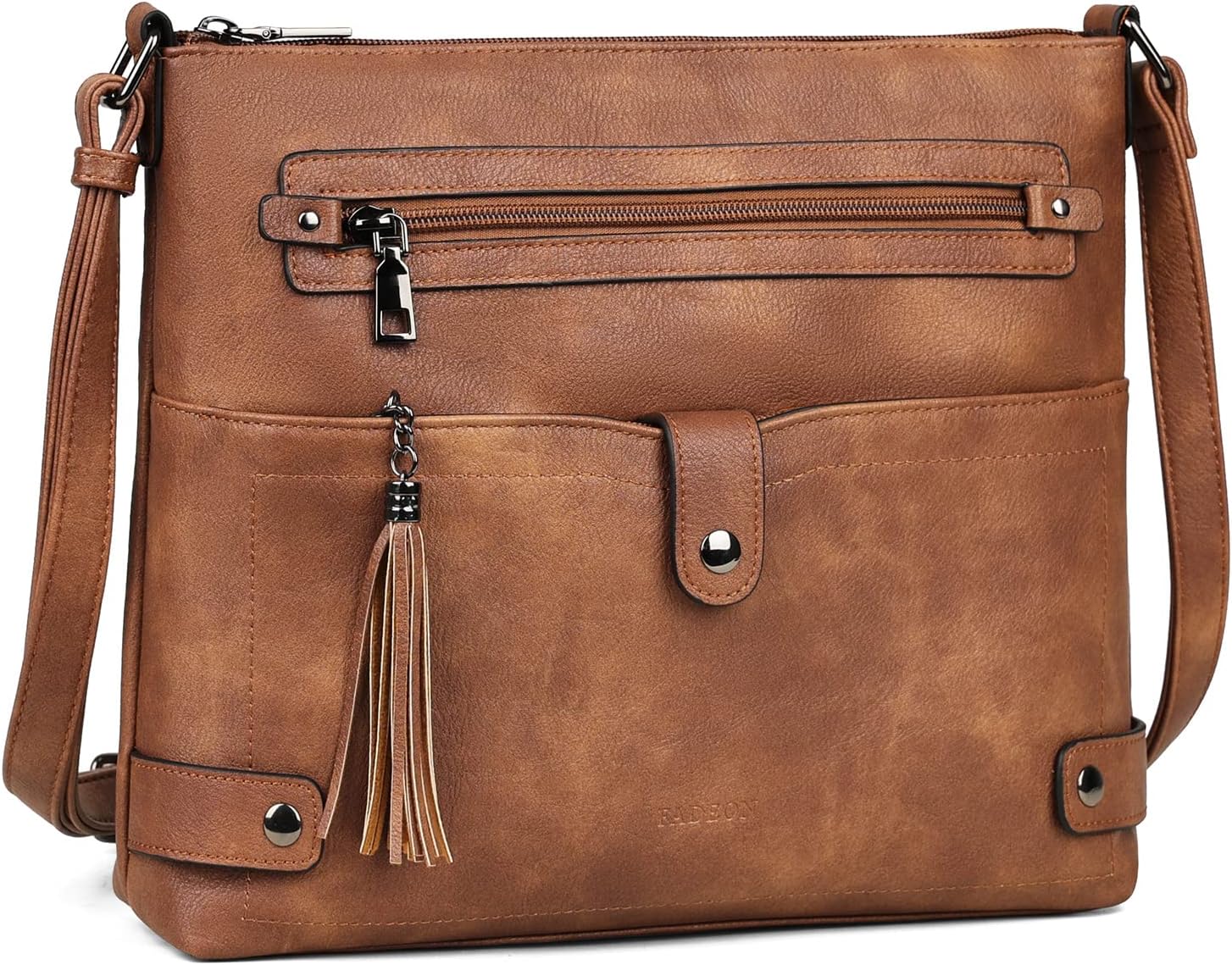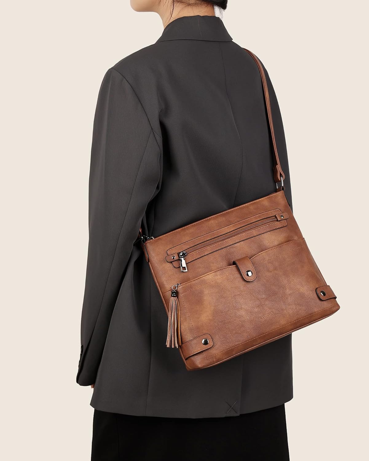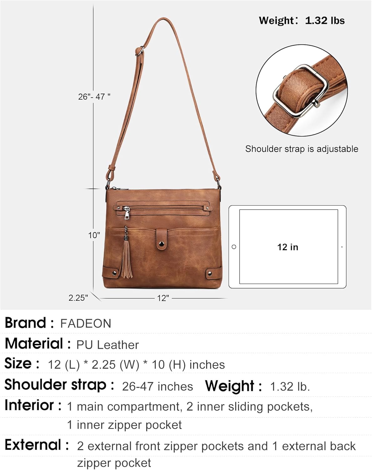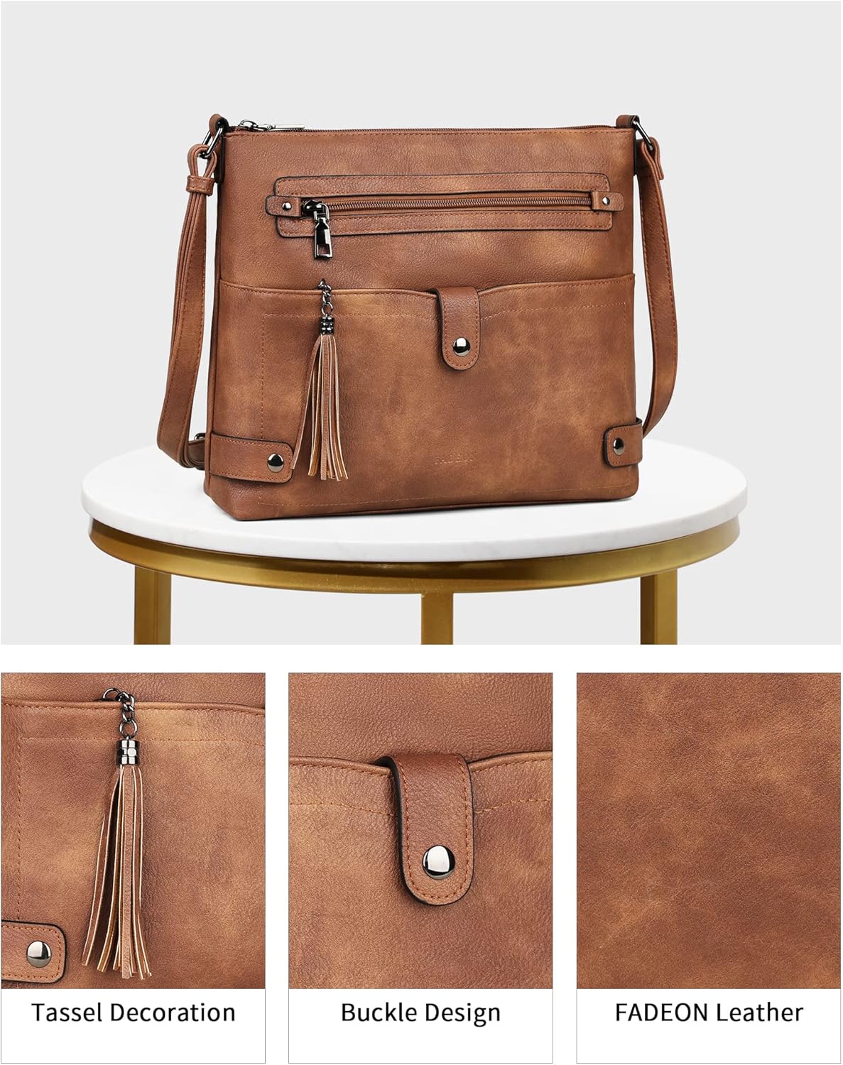 FADEON Large Crossbody Bag for Women Crossbody Purse, Leather Cross Body Purses Multi Pocket Roomy Shoulder Bag